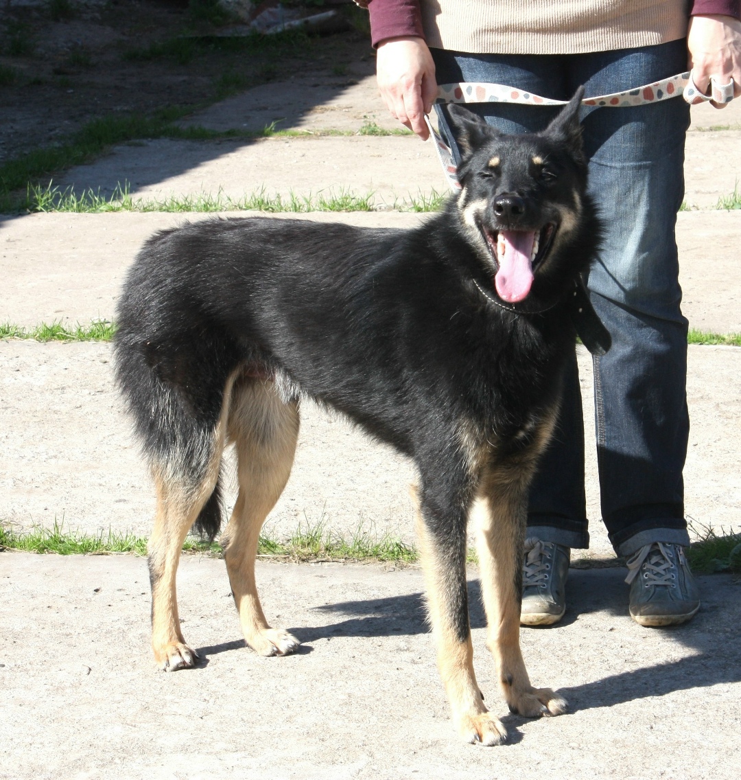 Наш Лимончик именно такой добрый парень. Ему не больше 1,5-2 года, ростом в холке до колена. Он хорошо ходит на поводке. Знает простые команды. Неконфликтный, компанейский и обаятельный пёс.