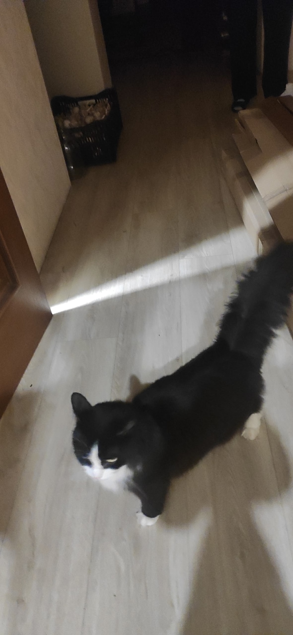 На Ковригинском шоссе 20 (овощная база) найден молодой очень умный кот, длинношерстный черно-белый, окрас симметричный, похож на норвежского лесного, чистый, ухоженный. Бельмо на правом глазу. Явно домашний. Може кто ищет его?