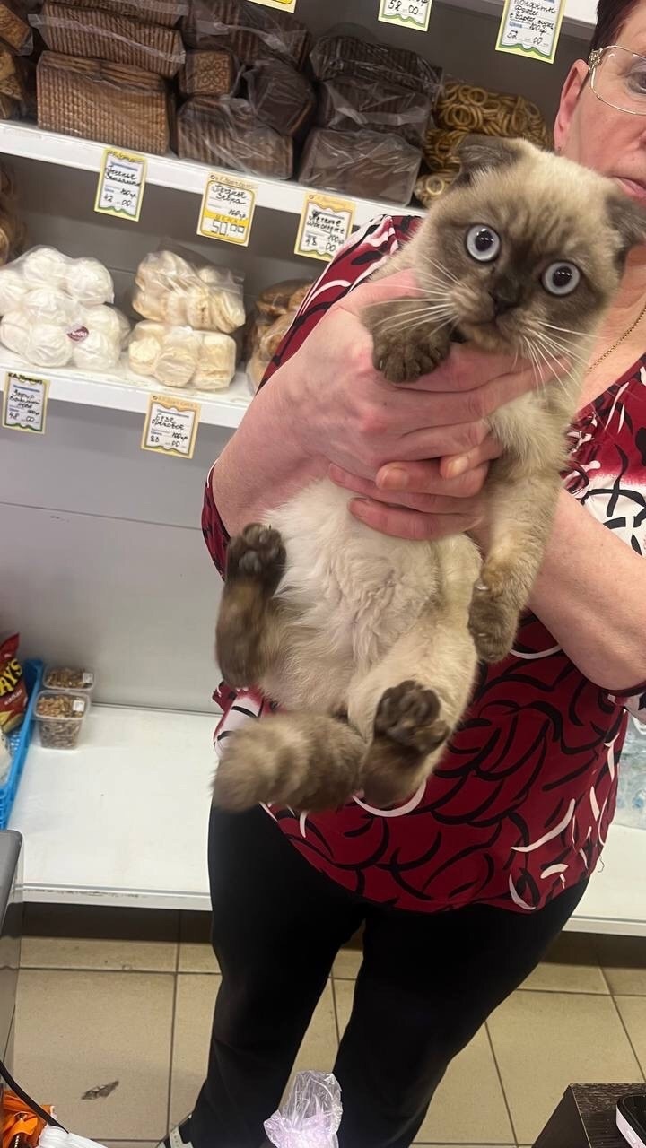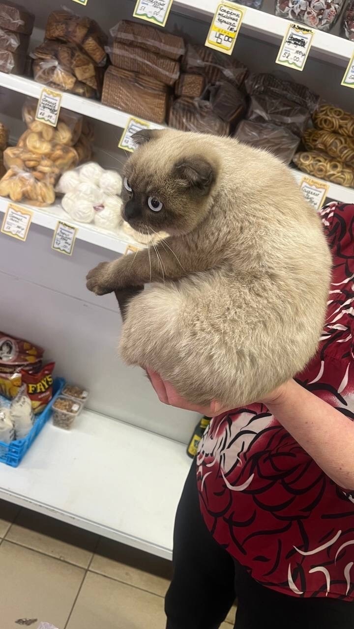 Вислоухая шотландка. Небольшого размера, с голубыми глазами. Может кто то потерял или желает забрать. Кошка сейчас на улице!! В состоянии стресса. Долго оставаться она там точно не сможет. Все вопросы и подробности в лс.