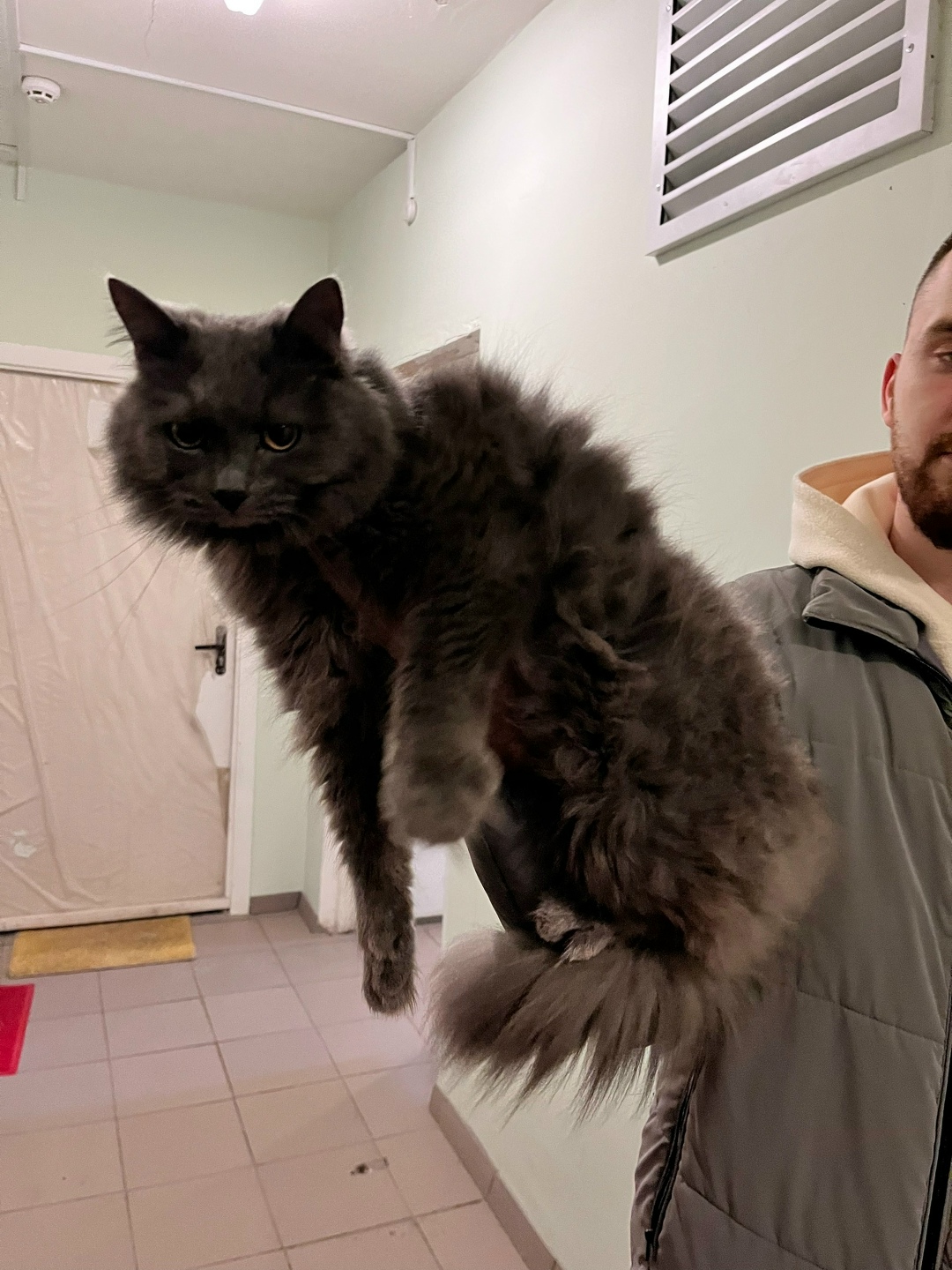 Махалина 28, 1 подъезд. На общем балконе 8 этажа нашли жалобно мяукающего кота. Чистый, ухоженный, явно домашний.