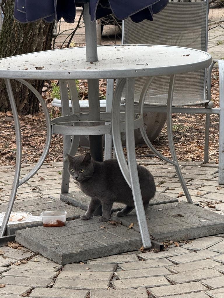 Здравствуйте! К кафе «Дом Ученых» прибился котик/кошка. Видно, что домашний, очень пугливый. Может кто-то потерял своего друга?