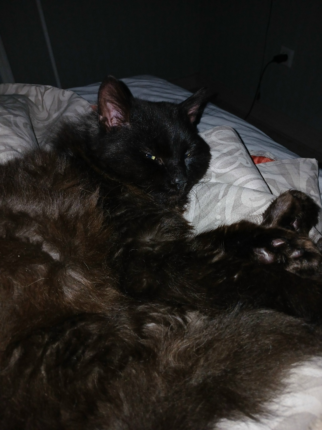 Спокойно сидит на руках, может полежать на коленях, достаточно тактильный. Возможно неблагополучная жизнь была, поэтому немного прижимает уши и при резких звуках просто непонимающе смотрит и замирает. К лотку удачно приучен. В ветеринарной клинике сказали, что молодой 1-1,5 года. На данный момент вес 3.4 кг, но с его комплектацией примерно 5 будет. Шерсть густая и немного кудрявая, как и усики. Темно-шоколадный ближе к черному цвет. Глаза желто-зеленые и идеально чёрный нос. Когти ему уже подстригли, уши обработаны, зубы в порядке, также проглистогонили. В дополнение дадим полотенце на котором он спит и лоток, также немного корма с собой. Характер достаточно спокойный, но в силу возраста может активничать. Пока не был замечен в порте имущества. Ни диваны, ни обои не дерет.