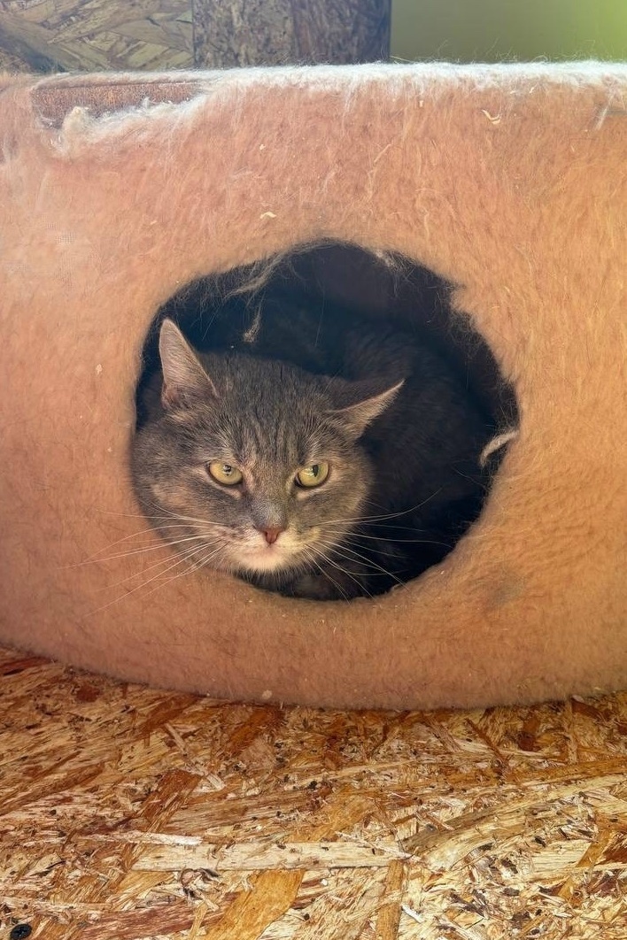 Анфиса проживала на ферме с другой кошкой. Долгое время они прятались от людей. Но их нашли, выловили и привезли в мини-приют, где они проживают сейчас с другими кошками.