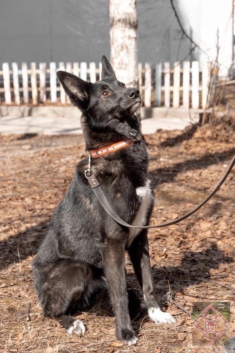 Девочка высокого интеллекта и необычного окраса: основная часть шёрстки чёрная, бока подпалые, белая грудка и носочки. А на угольно-черной мордочке полоски белых волосков! Очень не обычно!