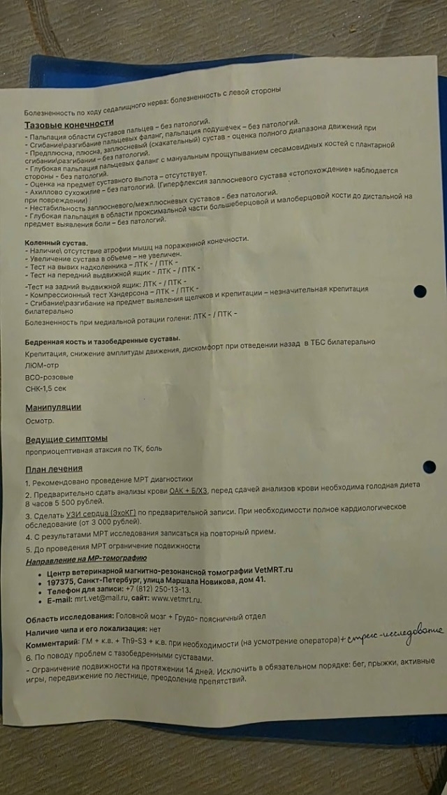 ❌Не описать мое состояние, у меня и слов уже нет, собака вся сыпется, но при этом довольная и с аппетитом. Мы посетили невролога Чуняева в «Доктор Котова», рекомендовано МРТ головы и позвоночника под наблюдением нефролога, собаку может в любой момент парализовать, глубокий болевой синдром между 8 и 9 диском, я в ШОКЕ, замкнутый круг, ведь у собаки еще и ХПН и наркоз чревато последствиями.