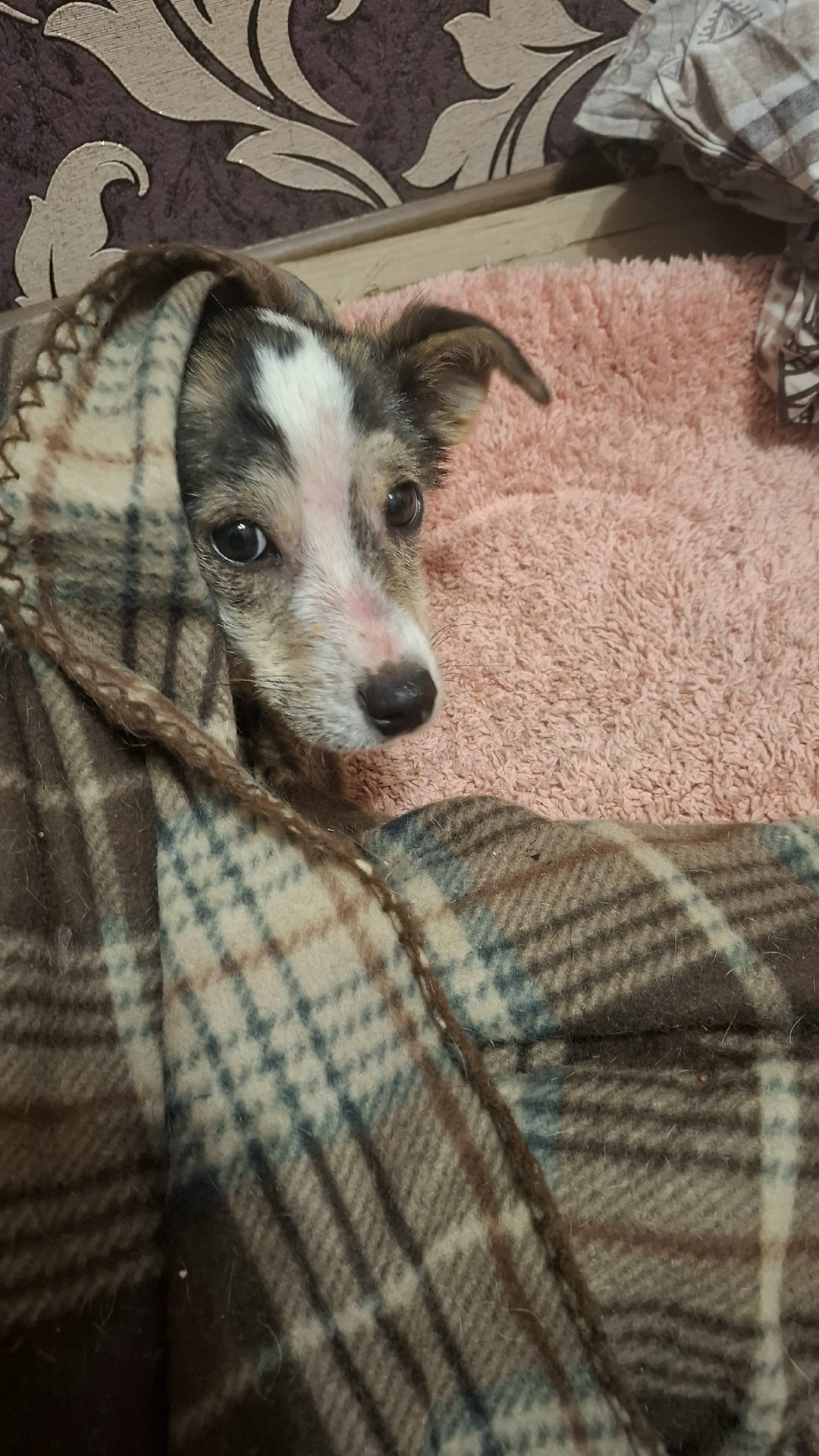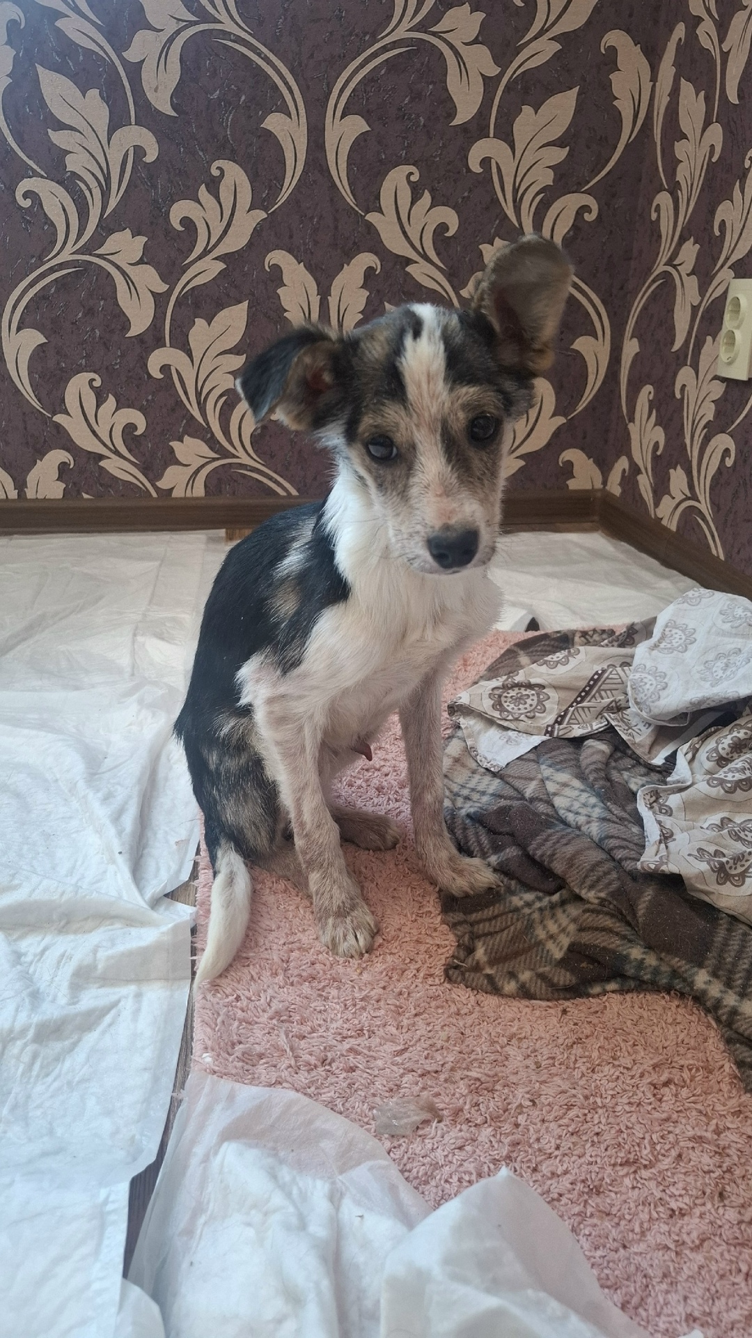 Сейчас щенок восстанавливается, по чуть чуть социализируется, обрабатывается от паразитов и ждёт вакцинаций.