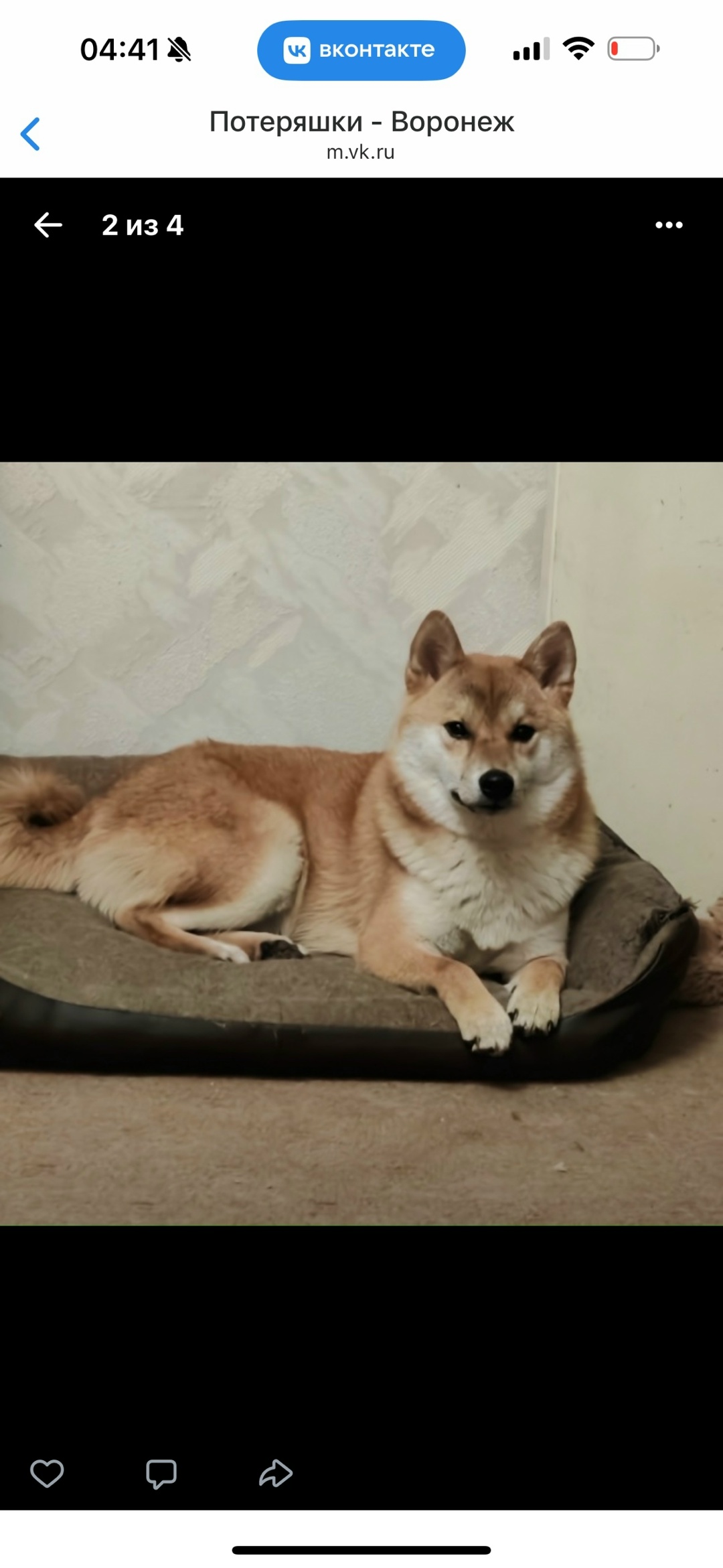 В новогоднюю ночь потерялась собака породы сиба ину!!!!! Кличка Хидэо!!! Левобережный район, стадион лицея #6!!!! У собаки адресник на шее!!! Пожалуйста помогите найти!!! Нашедшему вознаграждение!!!