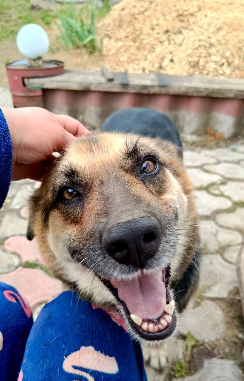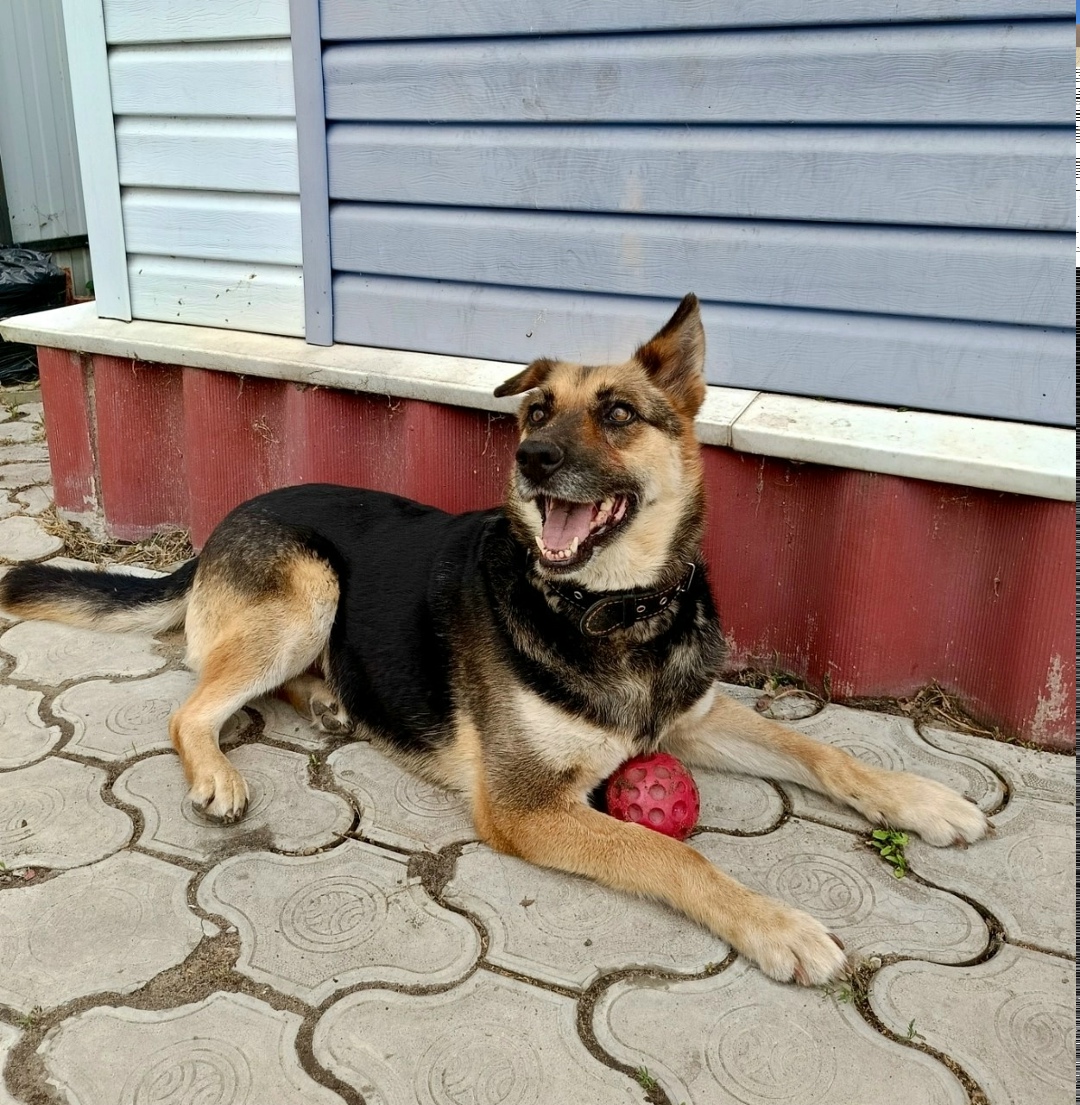 Юлька была найдена в конце лета 2024г. на трассе, брела с Курского направления сильно исхудавшая. Несколько месяцев бомжевала в поселке и находится на временной передержке с декабря 2024 года. Судя по внешности и повадкам это