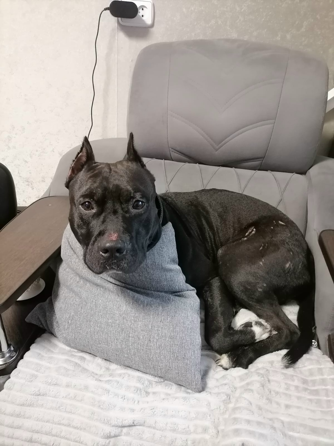 Помогаю информационно. На проспекте Мира, рядом с ТК Алладин найден пес. Питбуль, мальчик. Пес адекватный, не агрессивный. Временно придержала девушка. Чей потеряшка???