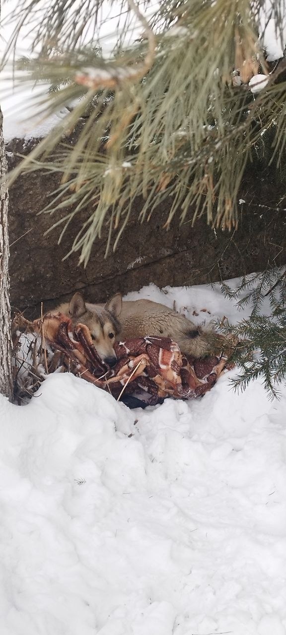 Больше недели бегал в районе Крайней (где Енисей), всех шугался( испытывал стресс), голодный, холодный....сердце не выдержало и завела на морозы домой, чтобы не пропал....😭😭😭