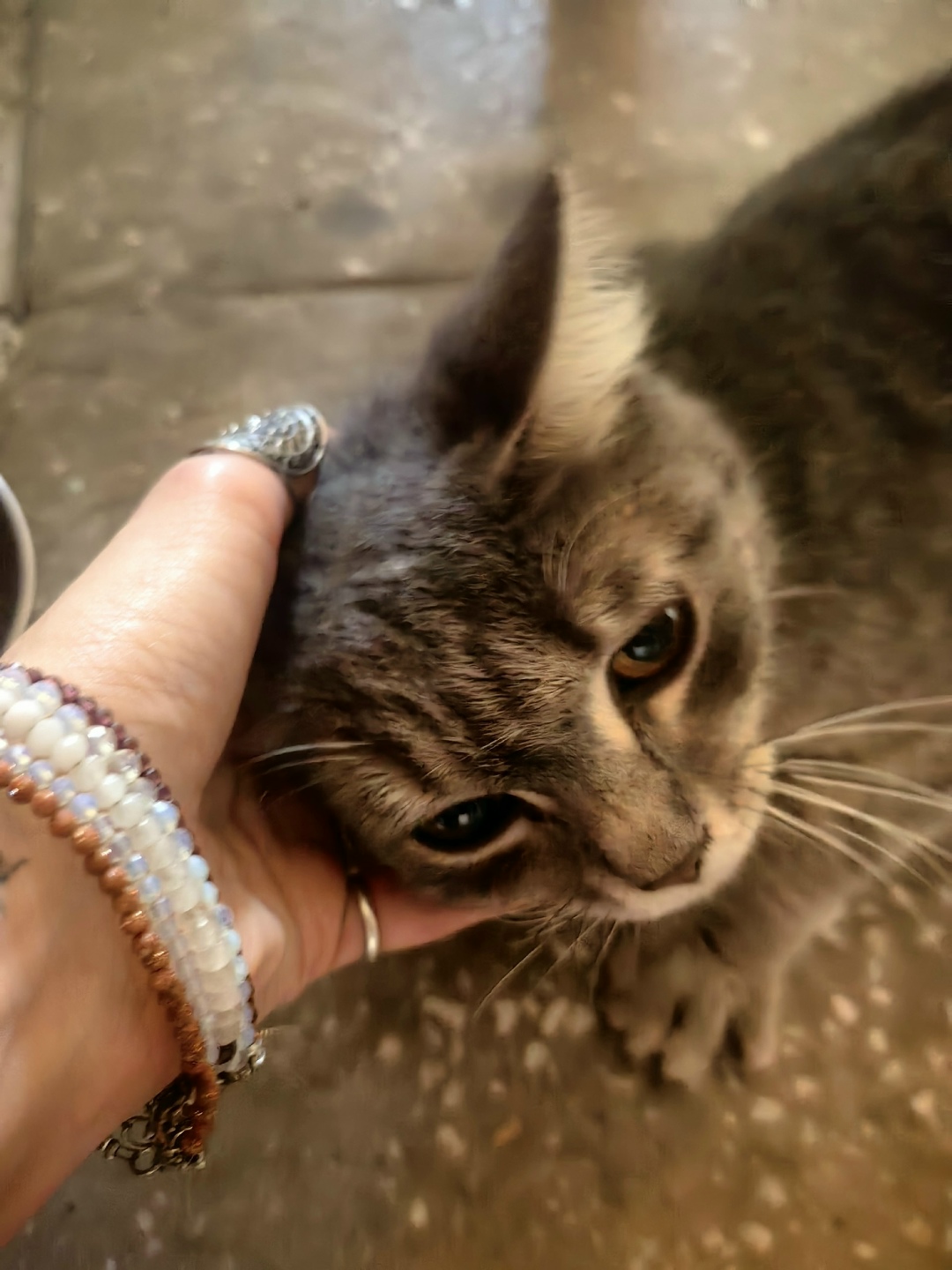 Кошечка ищет дом, очень ласковая и умненькая. Пока живёт у нас в подъезде,но боюсь соседи бабули ее выкинут. Сами взять неможем у нас своих 5 ро. Помогите пожалуйста!