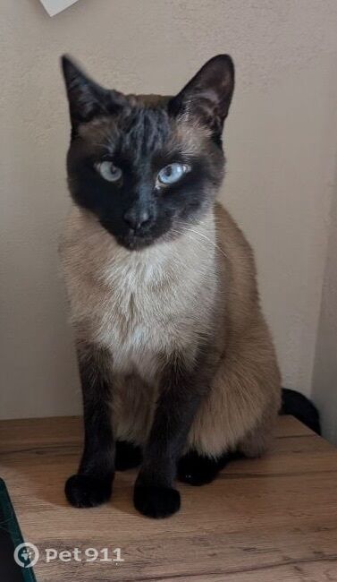 Сиамский (тайский ) кот , косые голубые глаза . Коричневый , расцветка характерная для сиамских кошек . Большие уши . Незаметно выбежал в подъезд , но в подъезде его нет . Подвала в доме нет . Рядом забор с зоопарком . Кот добрый и пугливый . Вероятно прячется