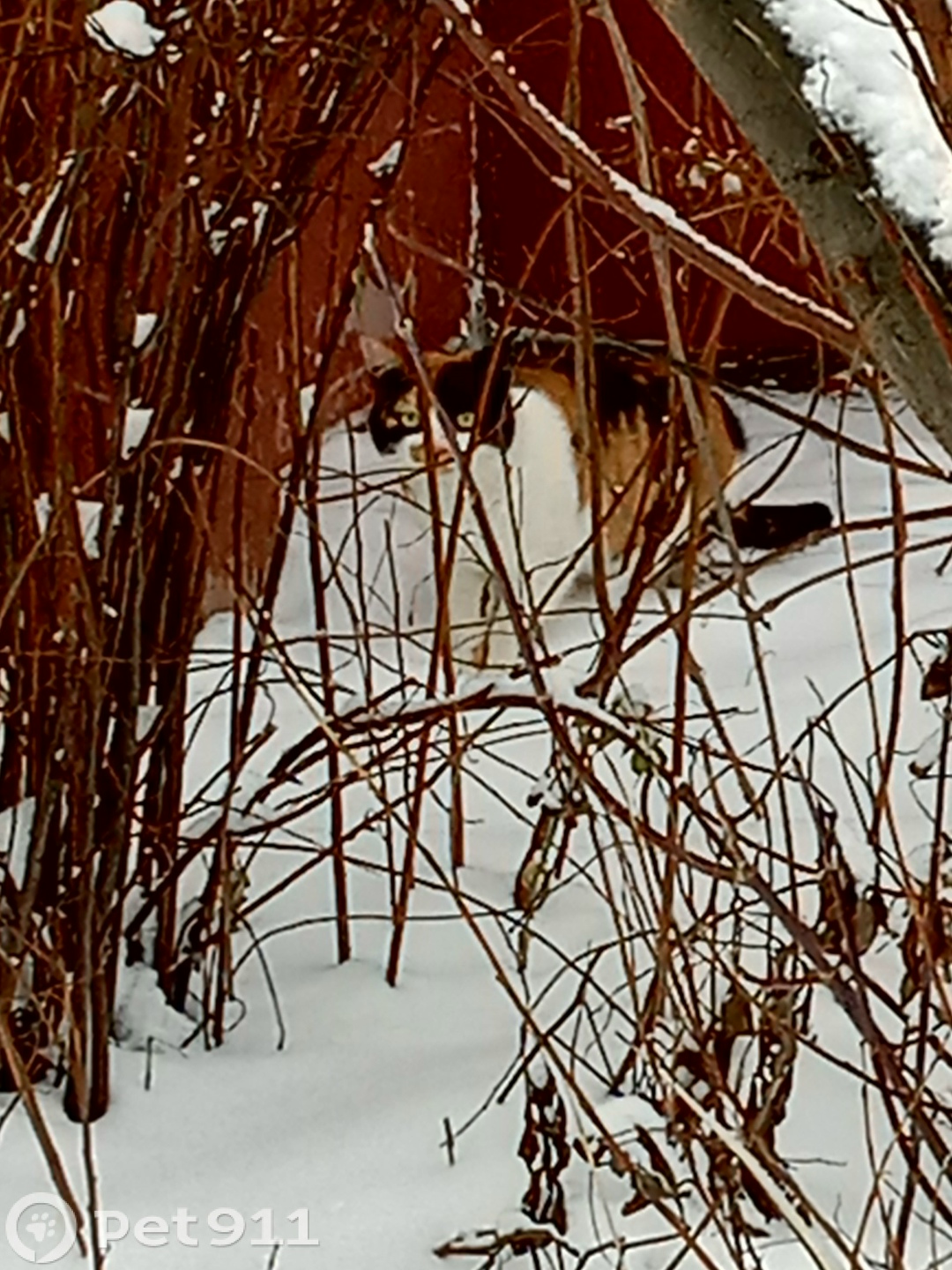 Кошка трехцветная , по видимому домашняя, сильно замерзла, еле ходит, возможно выпала у кого нибудь с балкона, объявлений о поиске не видела, замерзнет. Кошка упитанная, не раненая.