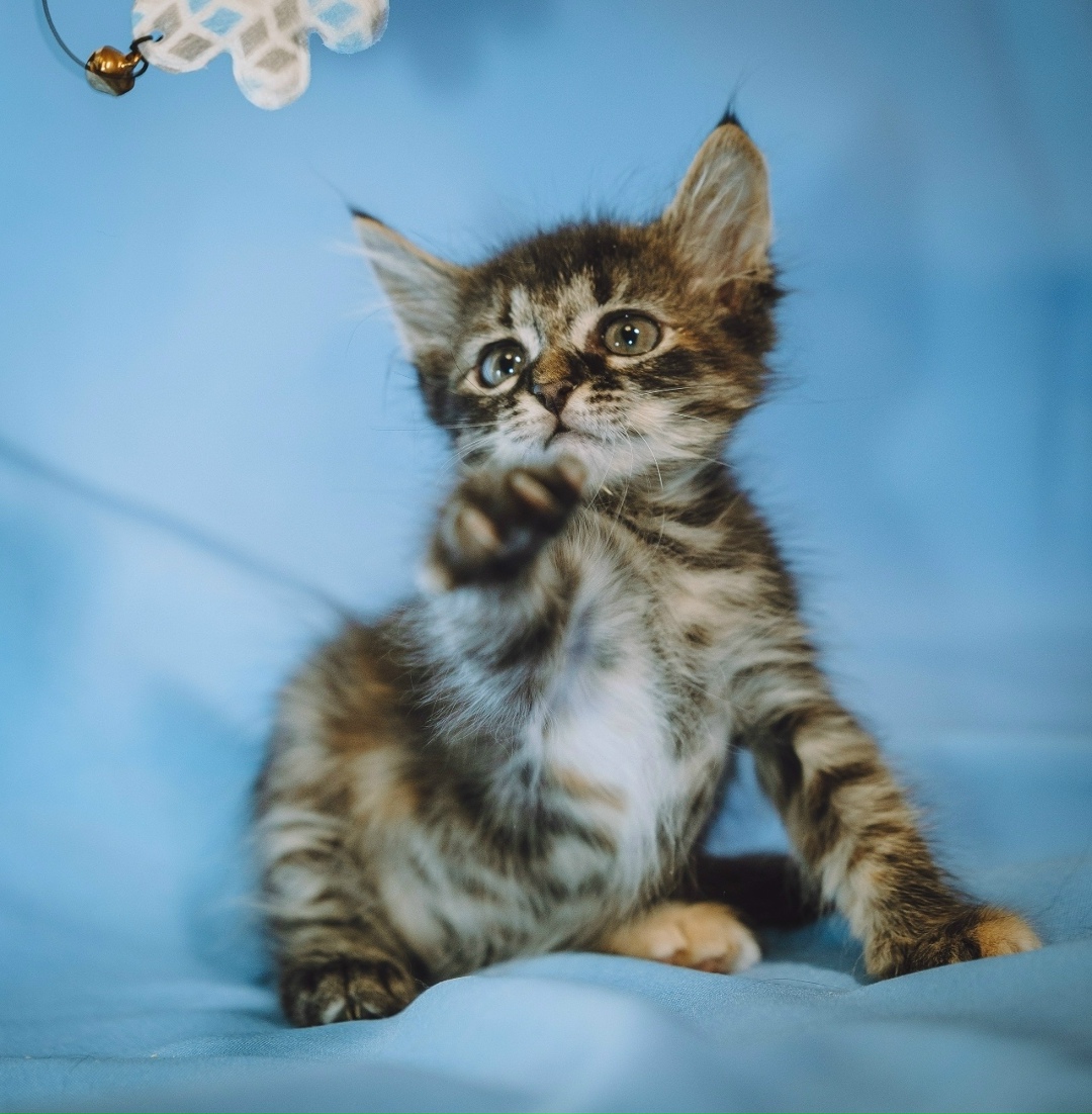 По характеру очень нежная, ласковая кроха. Любит играть, особенно любит игрушки со звенелками) Очень тянется к человеку, любит сидеть на ручках, любит покушать) У неё в носительстве кальцивироз, что не позволяет ей жить в компании других котиков.