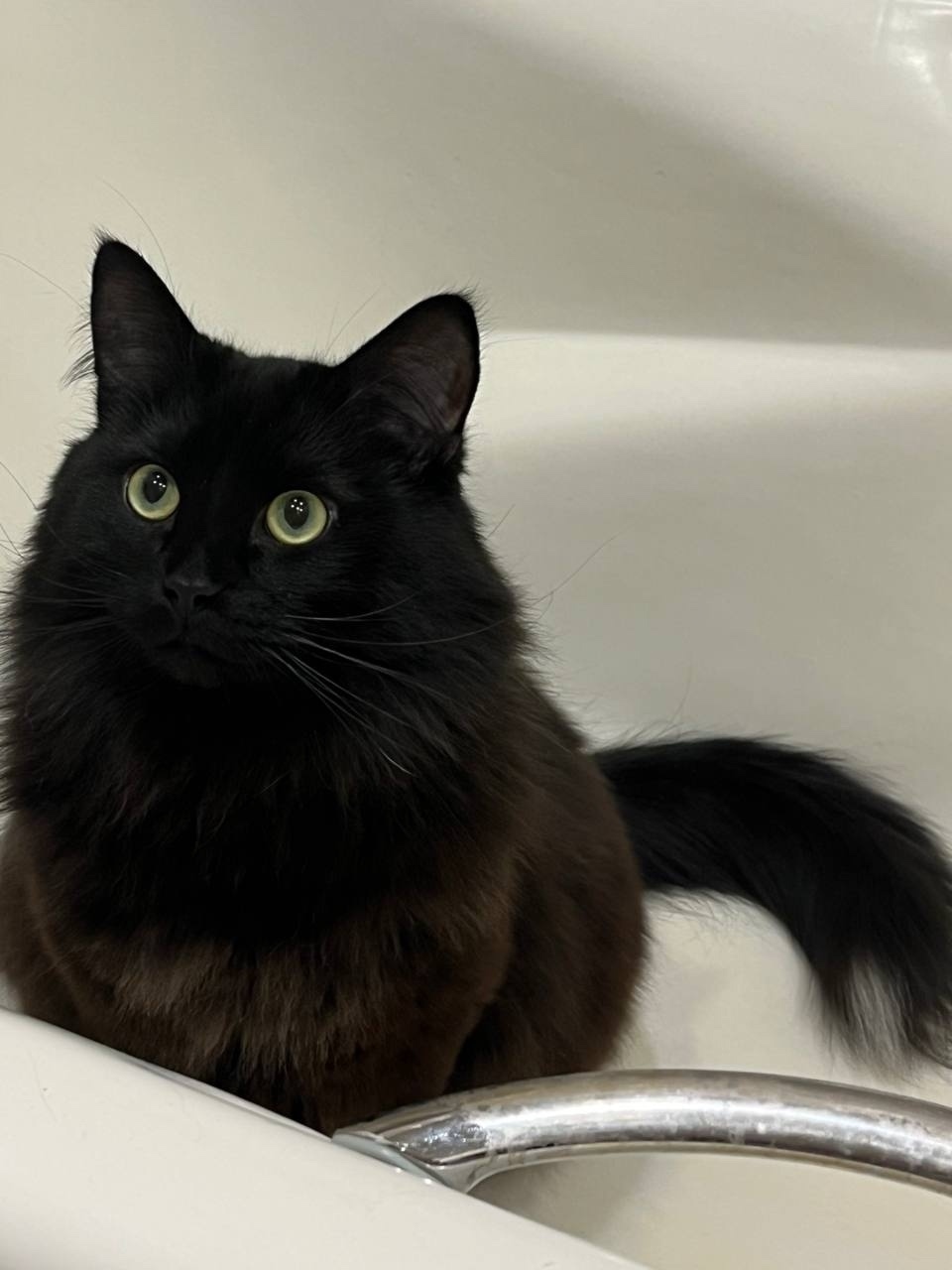 Особые приметы: черный пушистый кот с белой кисточкой на самом конце хвоста.