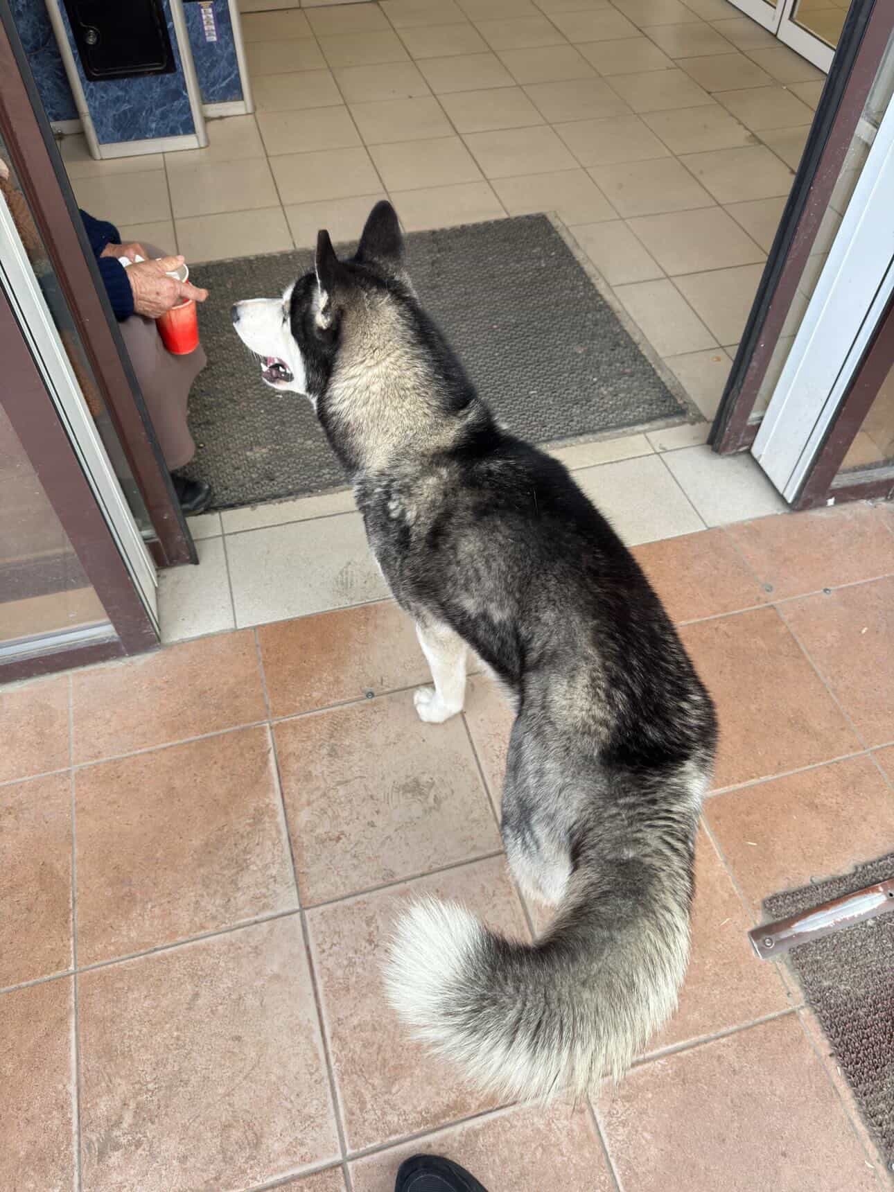 по перспективному где маршал бегает хаски😭😭 молодой. Не дается в руки, убегает. Напуган видимо, пытается найти хозяина как будто
