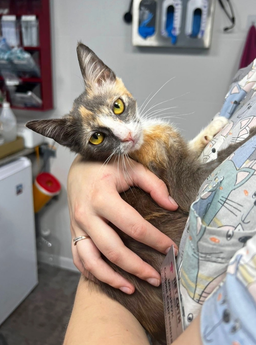 Котёнка накормили, временно поселили в служебном помещении. Пытались найти приюты, но все давно битком. А потом её кто-то выпустил на улицу, и она пропала.