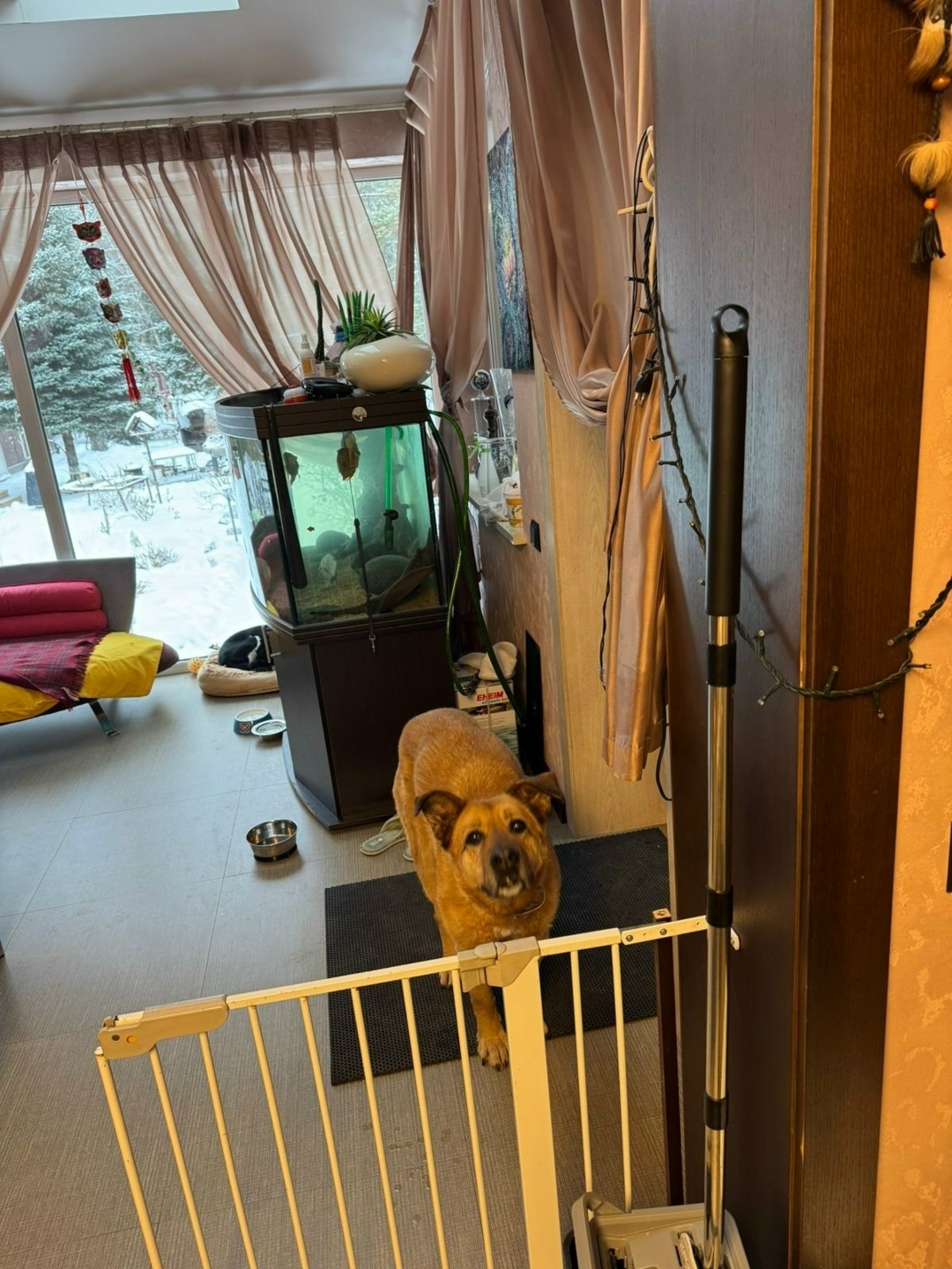 Собаке 14 лет,рыжий окрас ,на шее серый ошейник от блох,на щеке шрам.