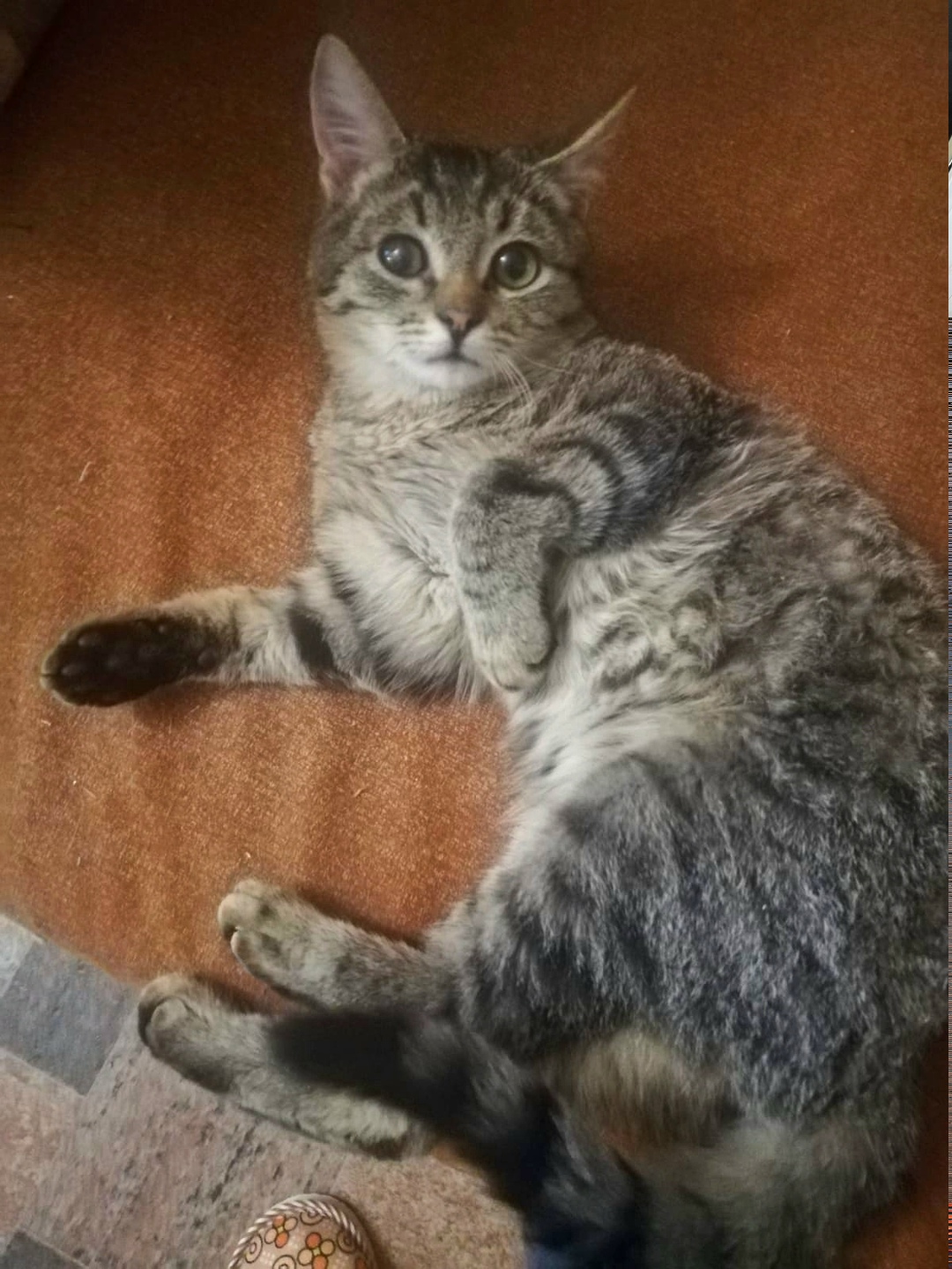 Сейчас кроха окреп после простуды, набирает вес, отлично владеет лотком с наполнителем и когтеточками. Хорошо кушает сухой и влажный корм. Обожает смотреть в окошко.