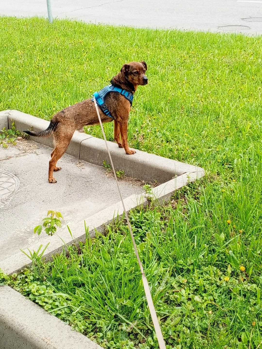 Мальчик порода метис, окрас рыже-черный, в холке чуть ниже колена, висячие ушки. возраст 2 года, вес 12 кг. Откликается на имя Лем, дружелюбный и гиперактивный. Прошу его приманить и удержать.