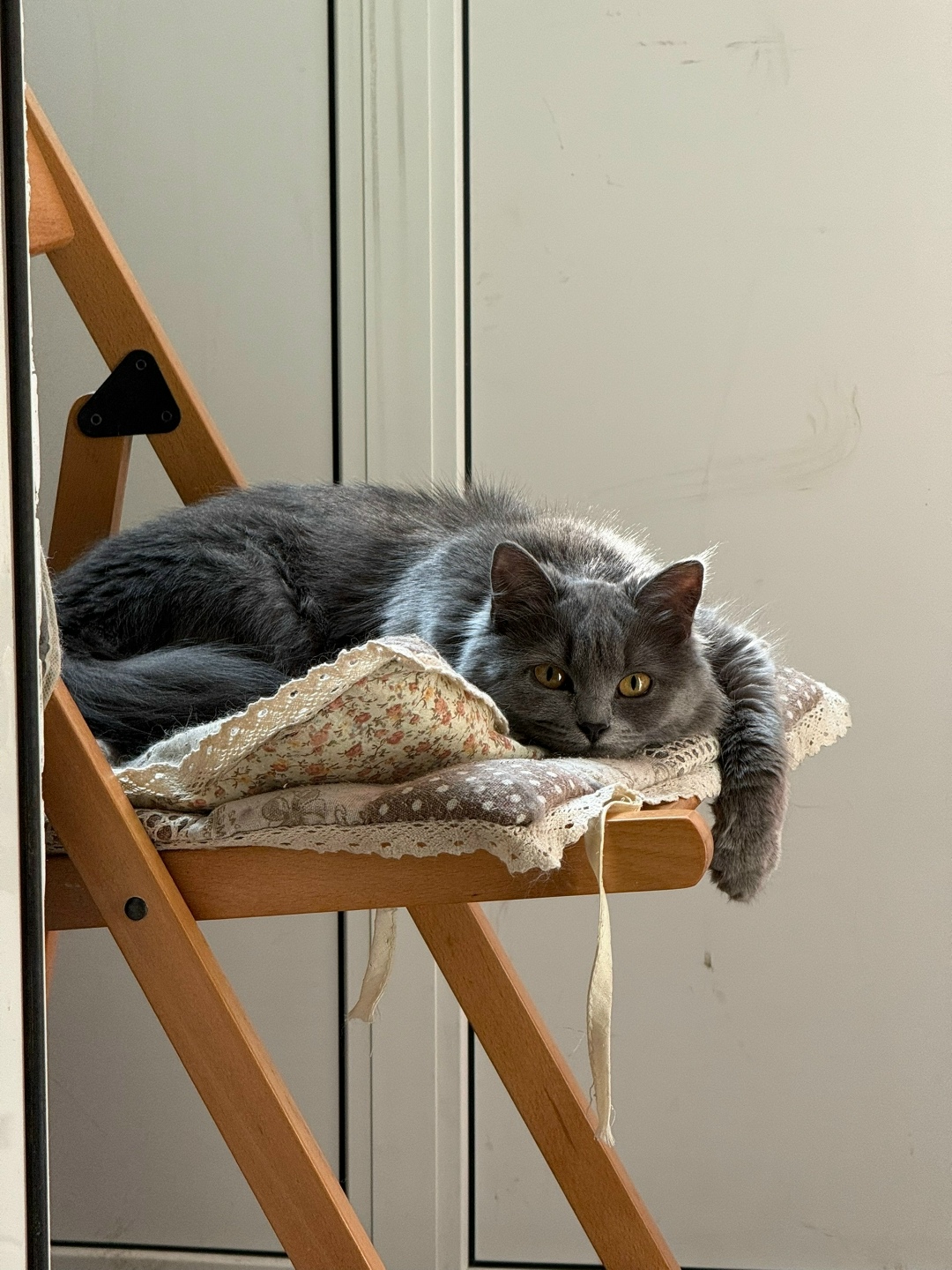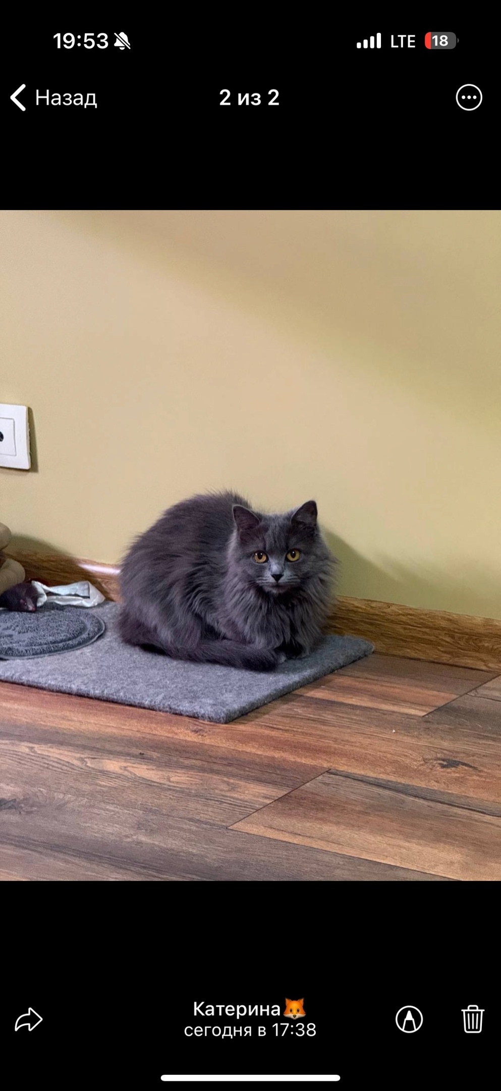 Серая, маленькая по размеру ,огннно-рыжие глаза,пушистая. Откликается на имя - Сюпа