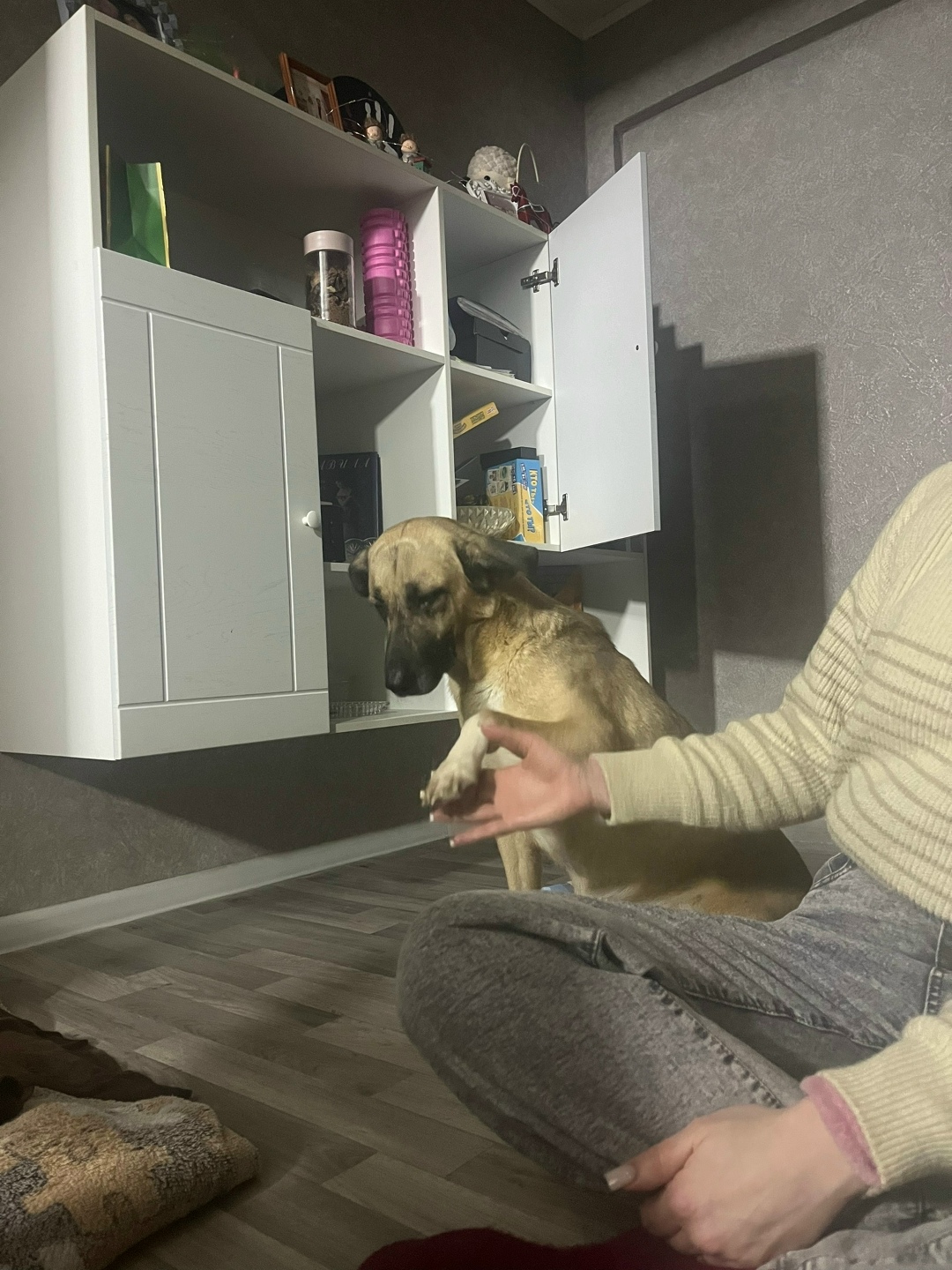 Собака недавно из приюта, может сильно бояться людей.