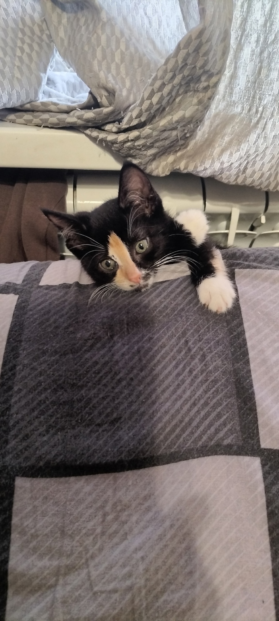 Нашли котенка (девочка) трехцветная выбежала на дорогу в Кировском районе по дороге Кирова. Смышленая, ласковая и умная кошечка, ходит строго на пеленку. Может есть желающие забрать в добрые руки, себе оставить не можем есть другие питомцы. Т.89876584051