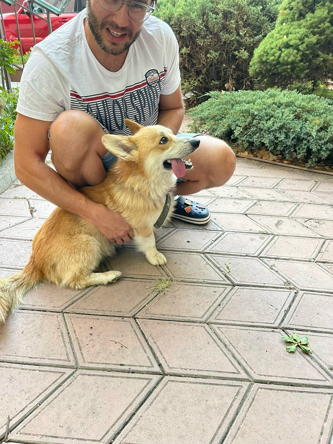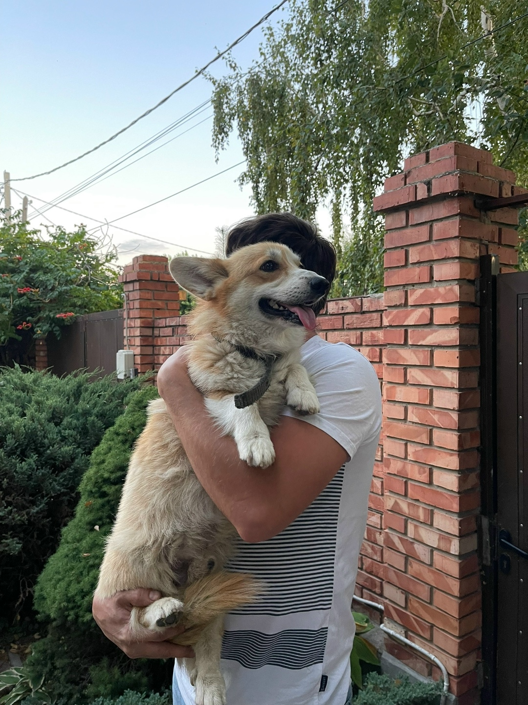 Бежал по дороге, несколько раз чуть не попал под машину. Он явно домашний, знает машину, поводок. Молодой, мальчик, в ошейнике.