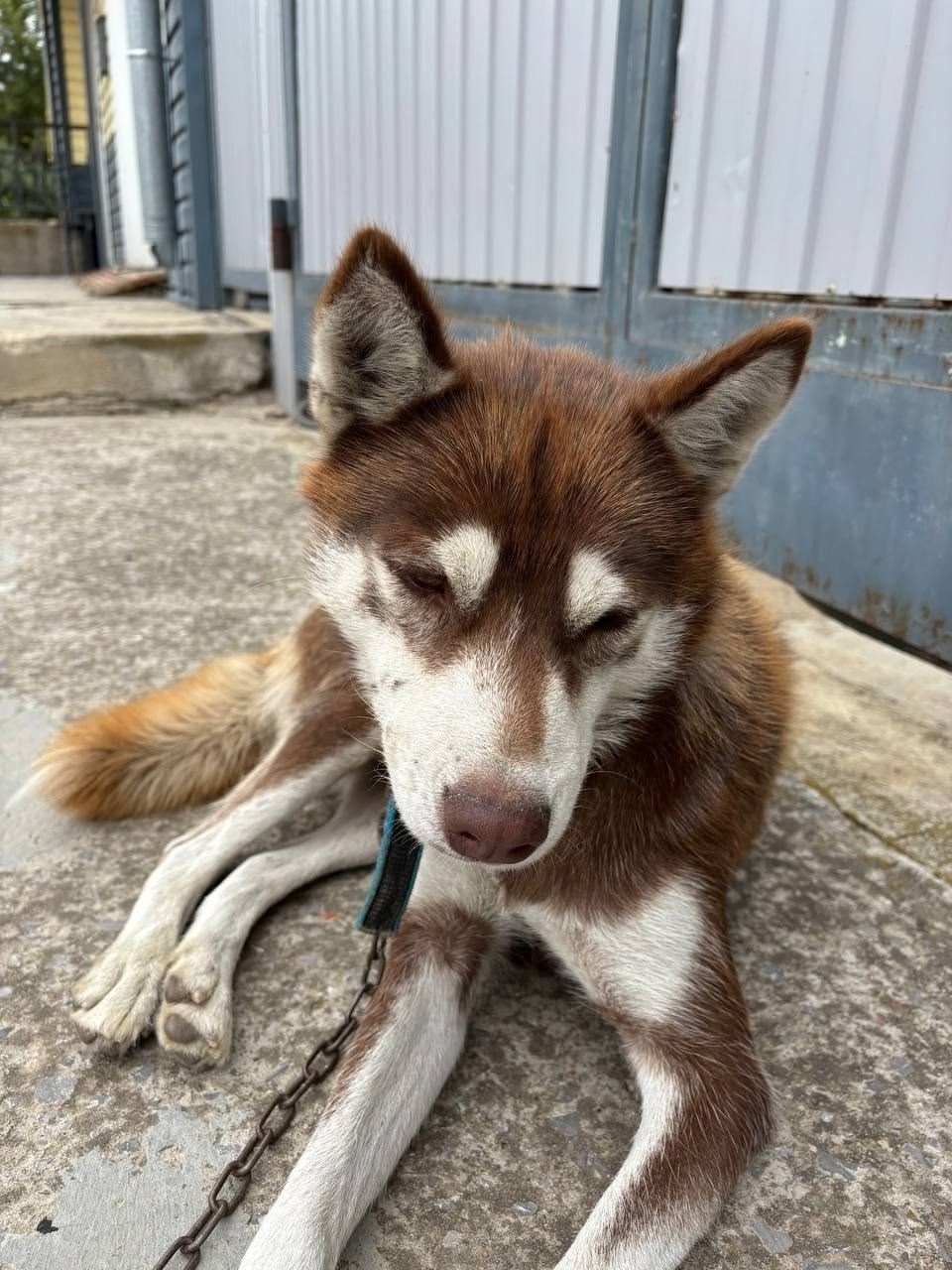 🦮На Ангарском найдена хаски с разными глазами, светло-коричневая, с синим ошейником. Долго не сможем держать. Наши хаски в шоке…