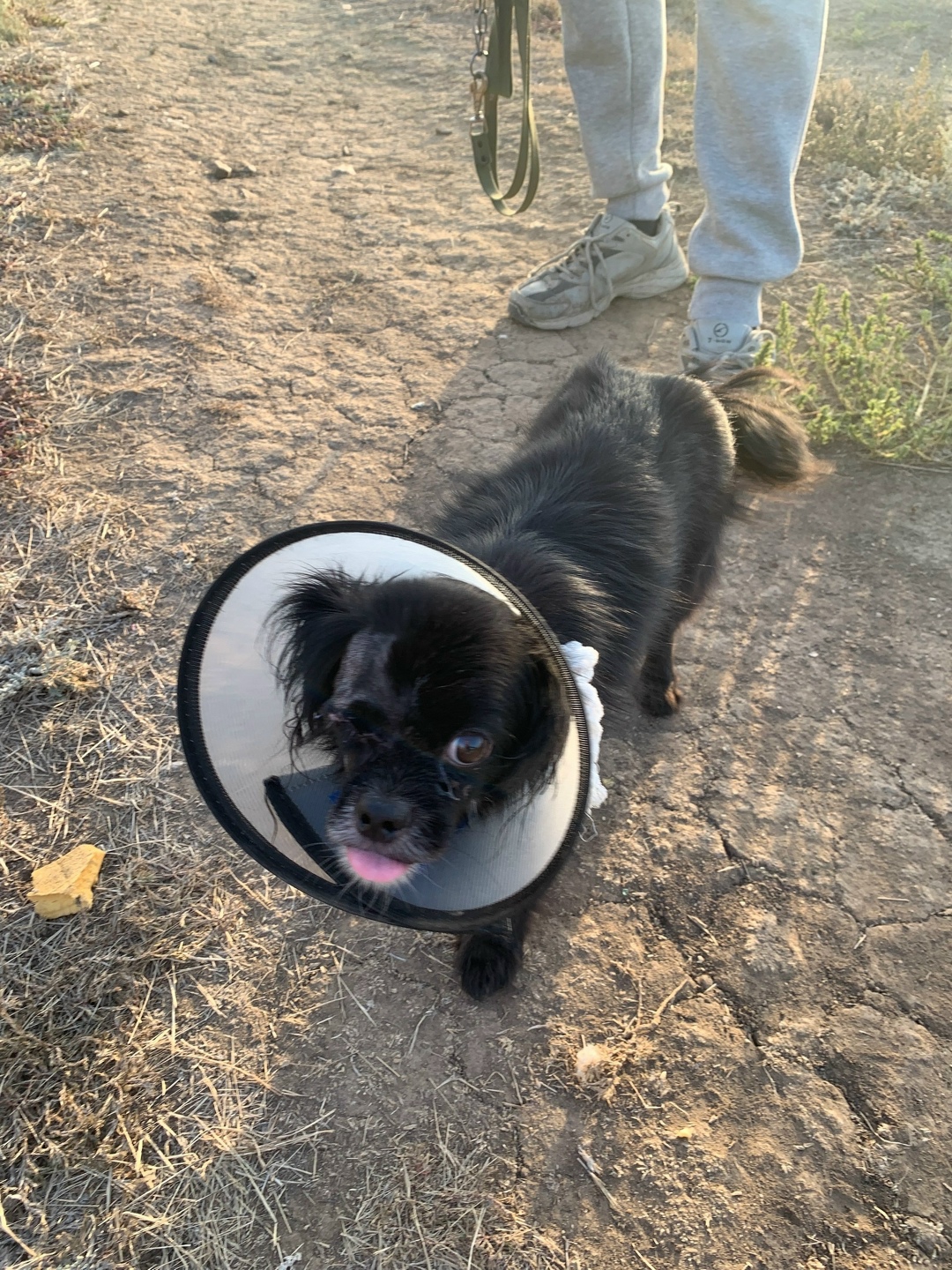 Кто потерял . Вчера в восемь вечера была найдена собака в Ворошиловском районе остановка 2 Волгоград. Собачка после операции на глаз . Хозяин отзовись 😭