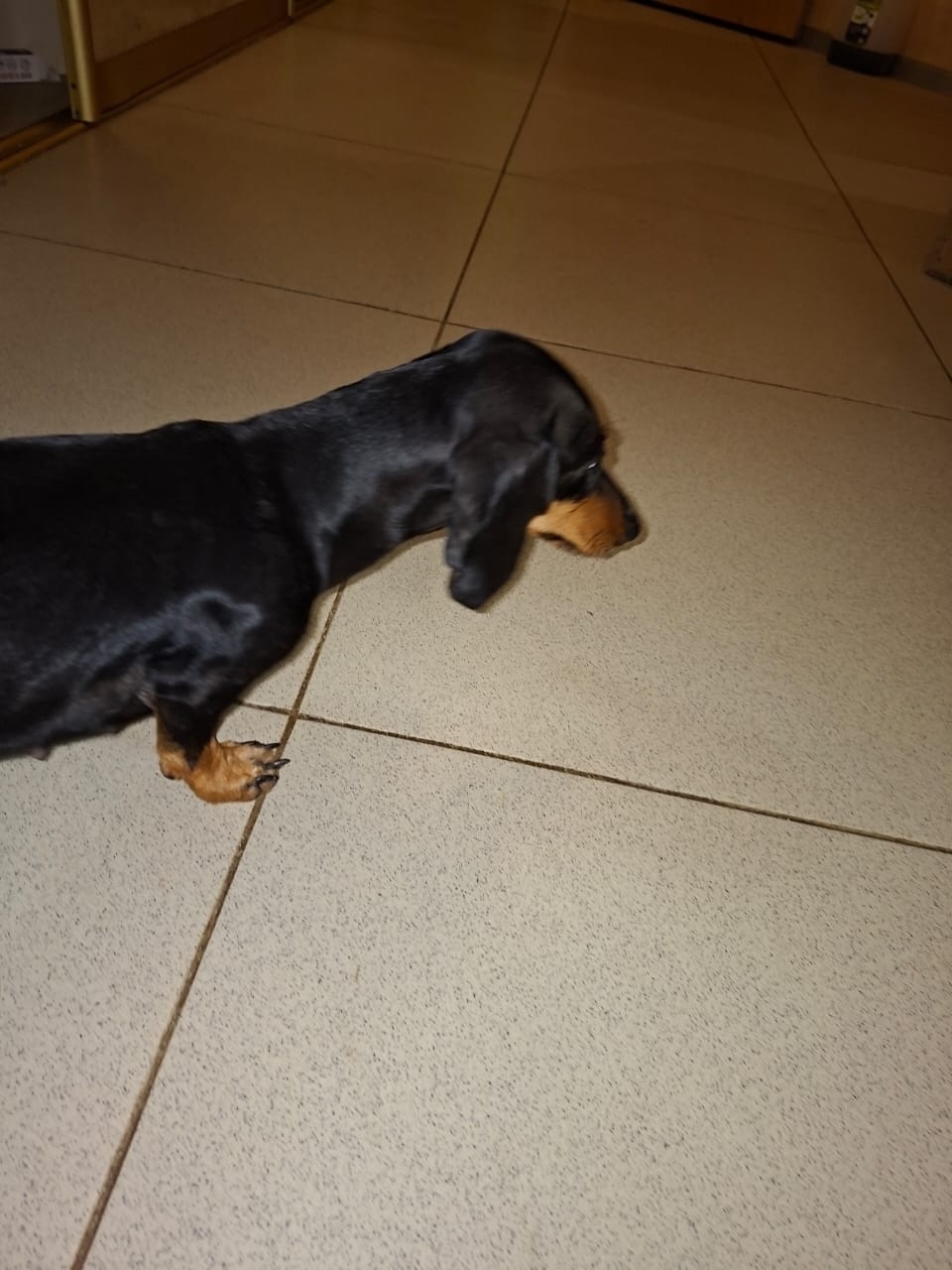 Такса черно-коричневая, девочка. Нашли около Пичуги на даче. Была без ошейника, ногти не подстриженны