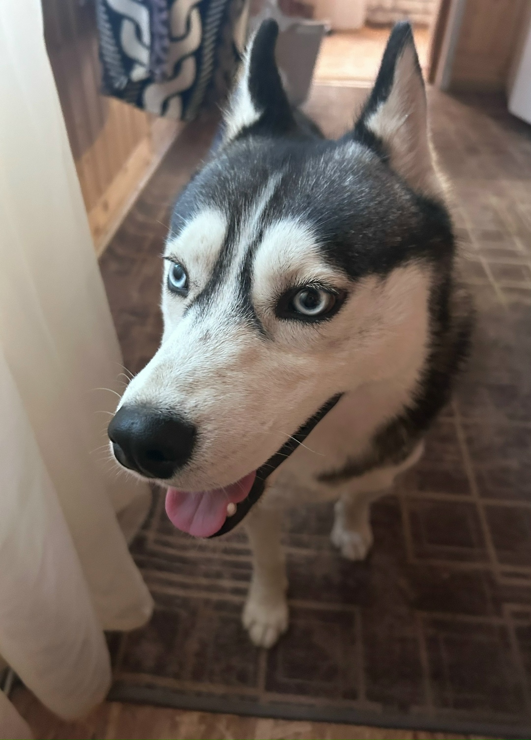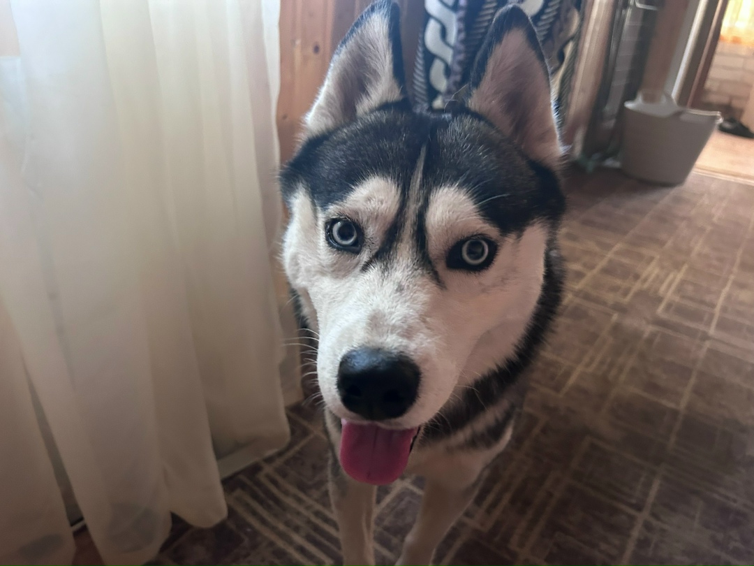 Нашёлся пес, порода хаски, по виду домашний , был со шлейкой.