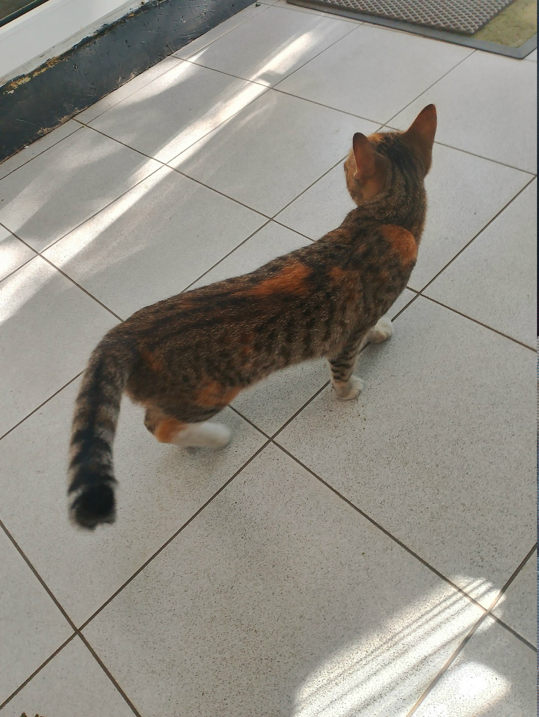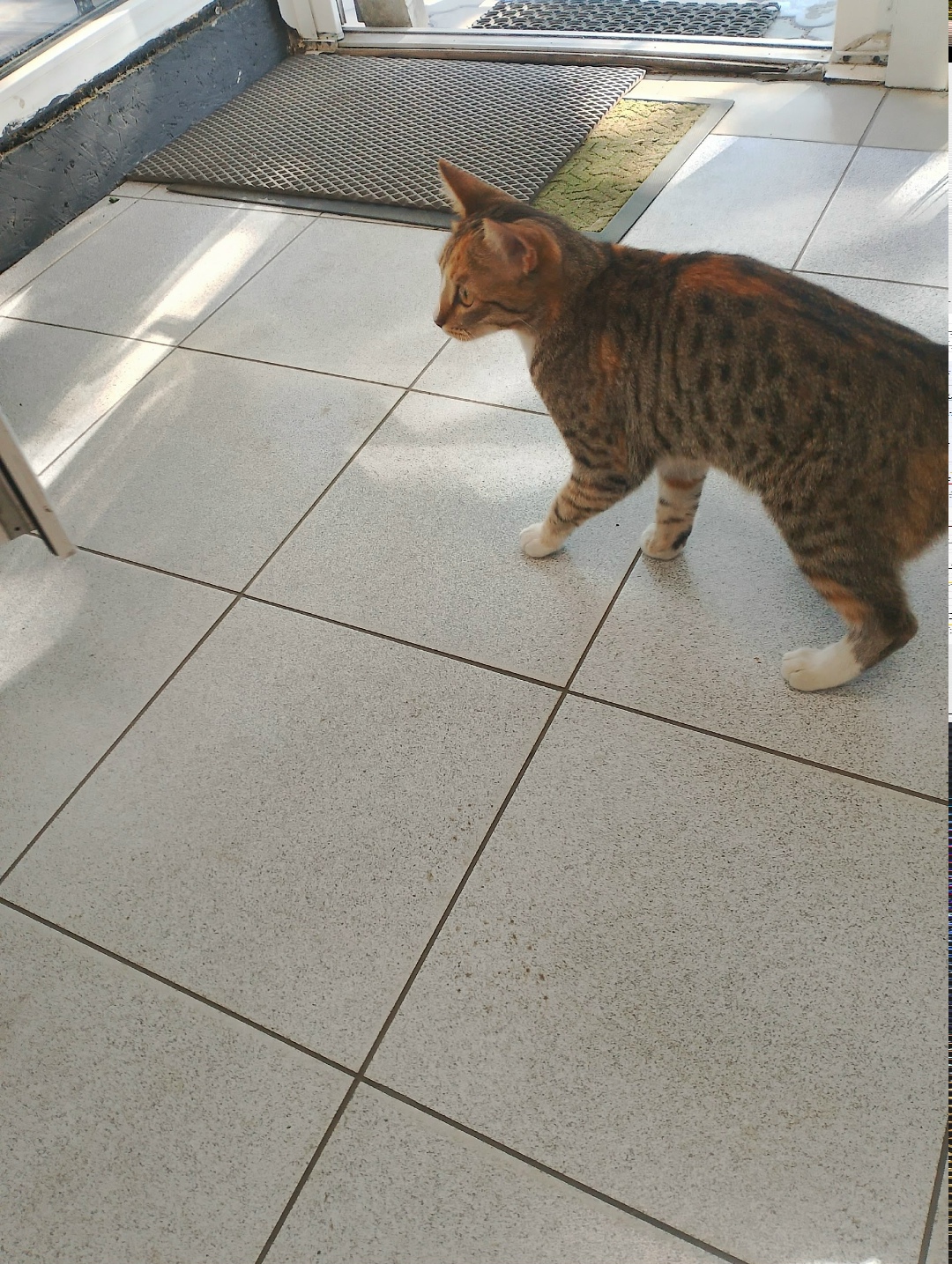 Гуляет кошка в районе 107 школы. На вид чистая. Сейчас находится у цветочного магазина. Кошечка ласковая. Может кто потерял ее
