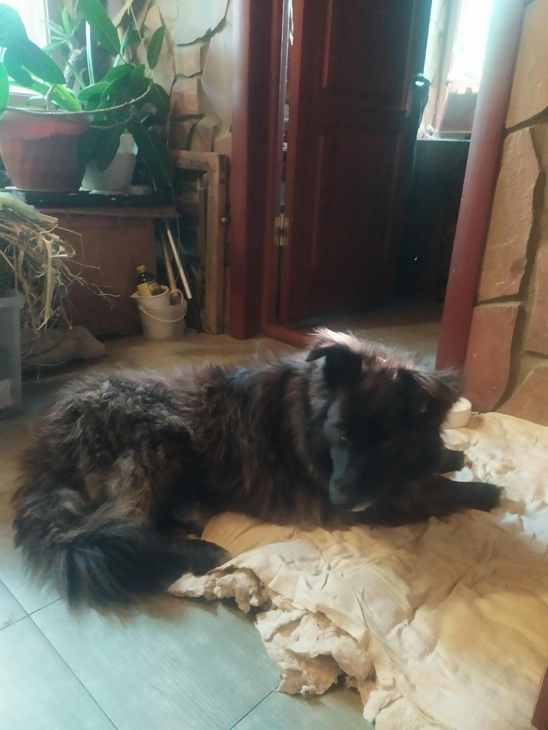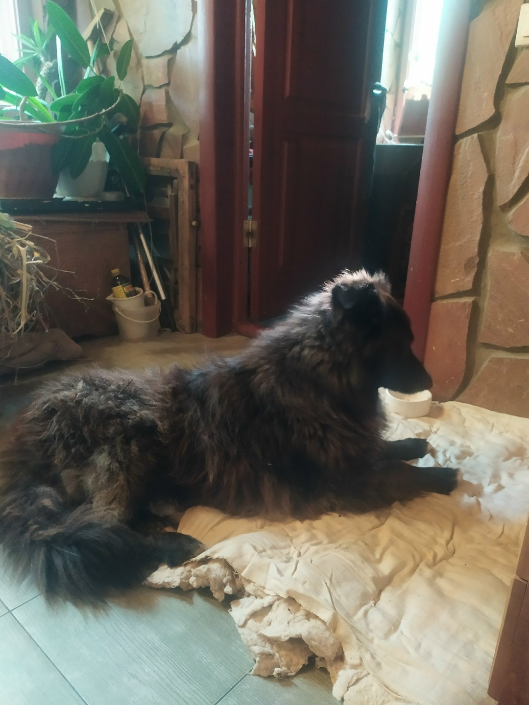 Убежала собака с дач в Среднеахтубинском районе - СНТ "Лесные дачи". Коричневая, длинношерстная, размером с овчарку. В шлейке и в ошейнике. Чипированная - с зелёным чипом " Северный".