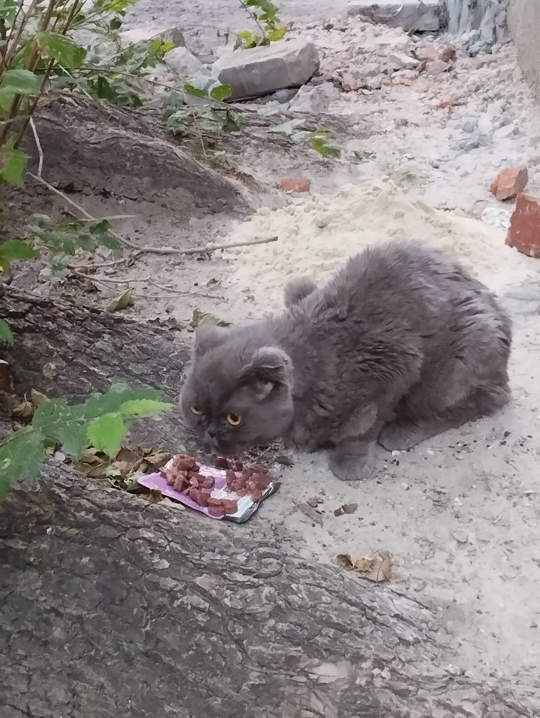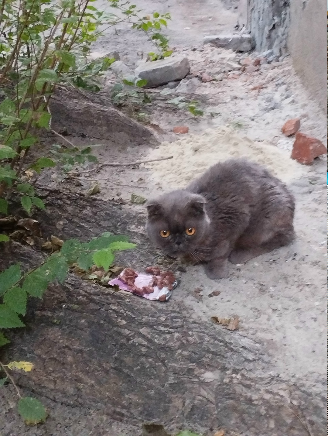 Нашли очень худого вислоухого котика/кошку по адресу улица Канунникова 5/ улица Козловская 3. Очень активно идёт на контакт.