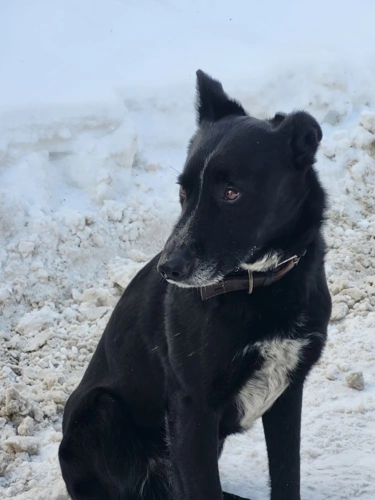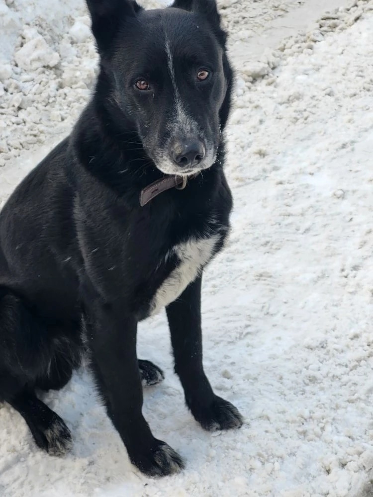 Прибилась собака. Кобель. Черно-белый. С ошейником. Одно ухо не поднимается. Доброжелательный. Находится по адресу: Балашиха, микро-н Салтыковка. Ул. Победы. Если узнали свою собаку приезжайте га эту улицу. Собака живет в будке другой собаки.