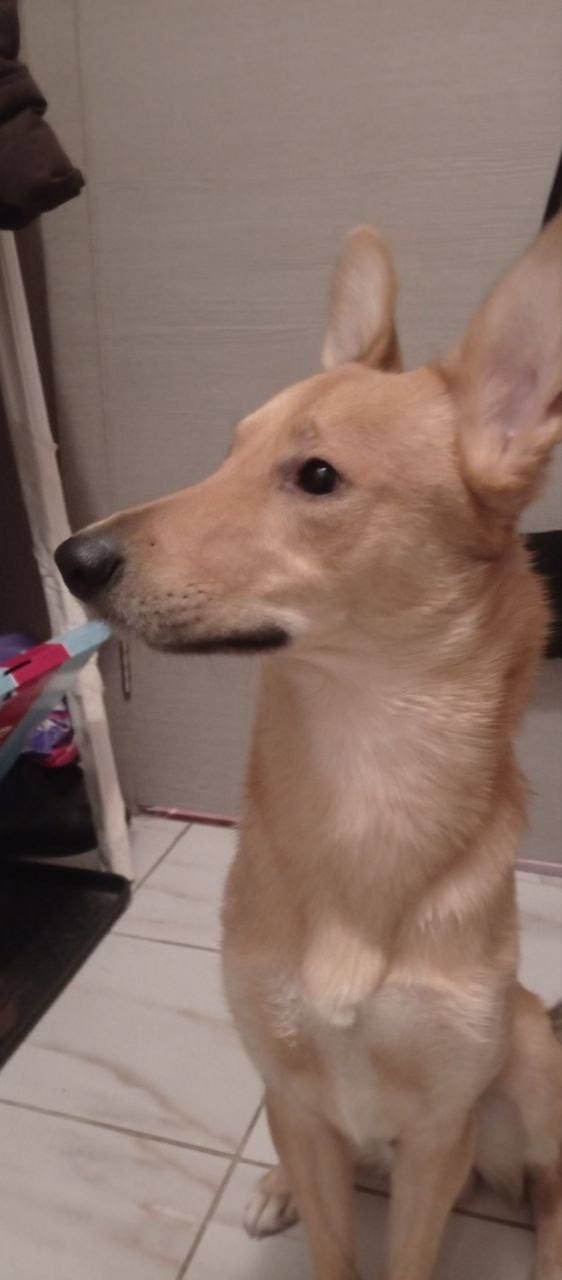 Собака мальчик, рыжеватого цвета, спокойный, знает несколько команд к другим собакам относится так же спокойно, ничего с рук не ест.