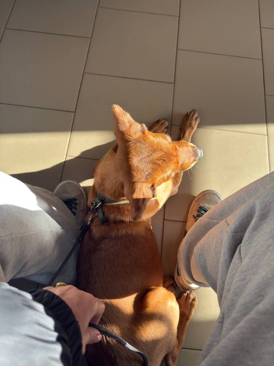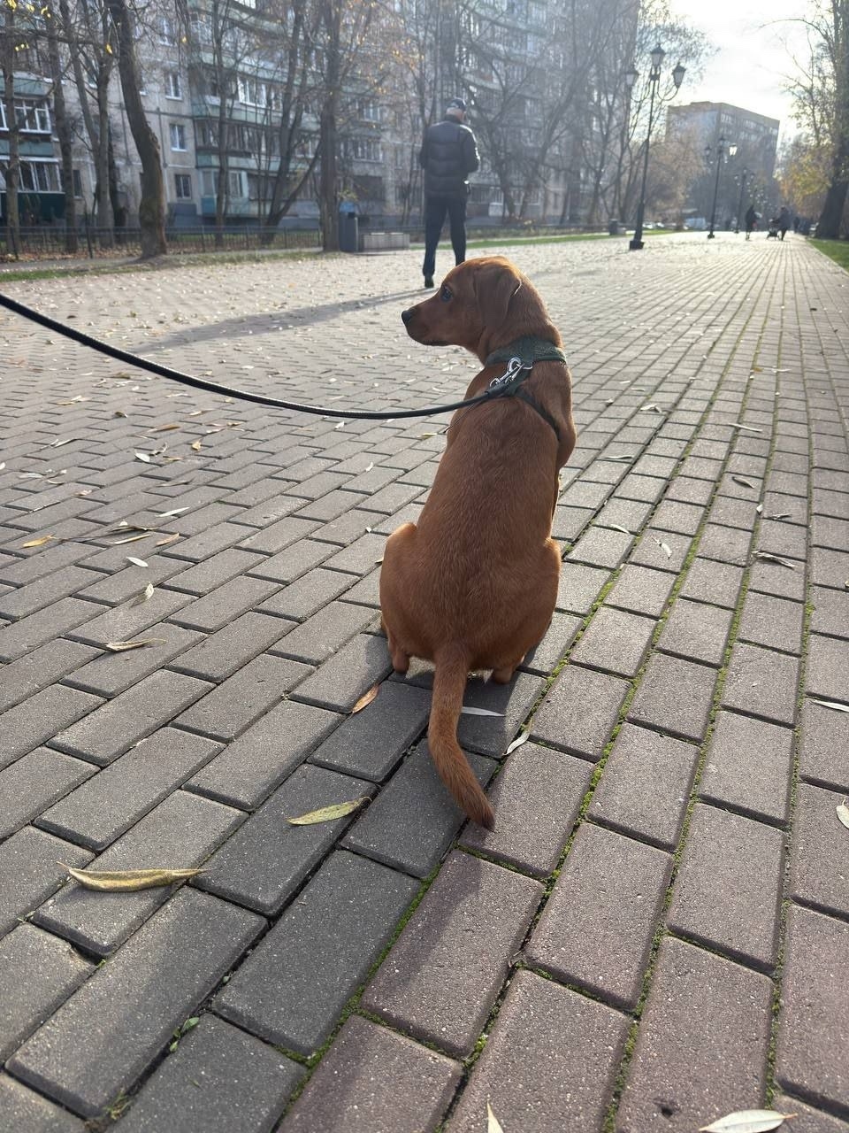 Очаровательный рыжий щенок со шлейкой и обрывком поводка. По характеристике ветеринары в районе полугода, без клейма и чипа.
