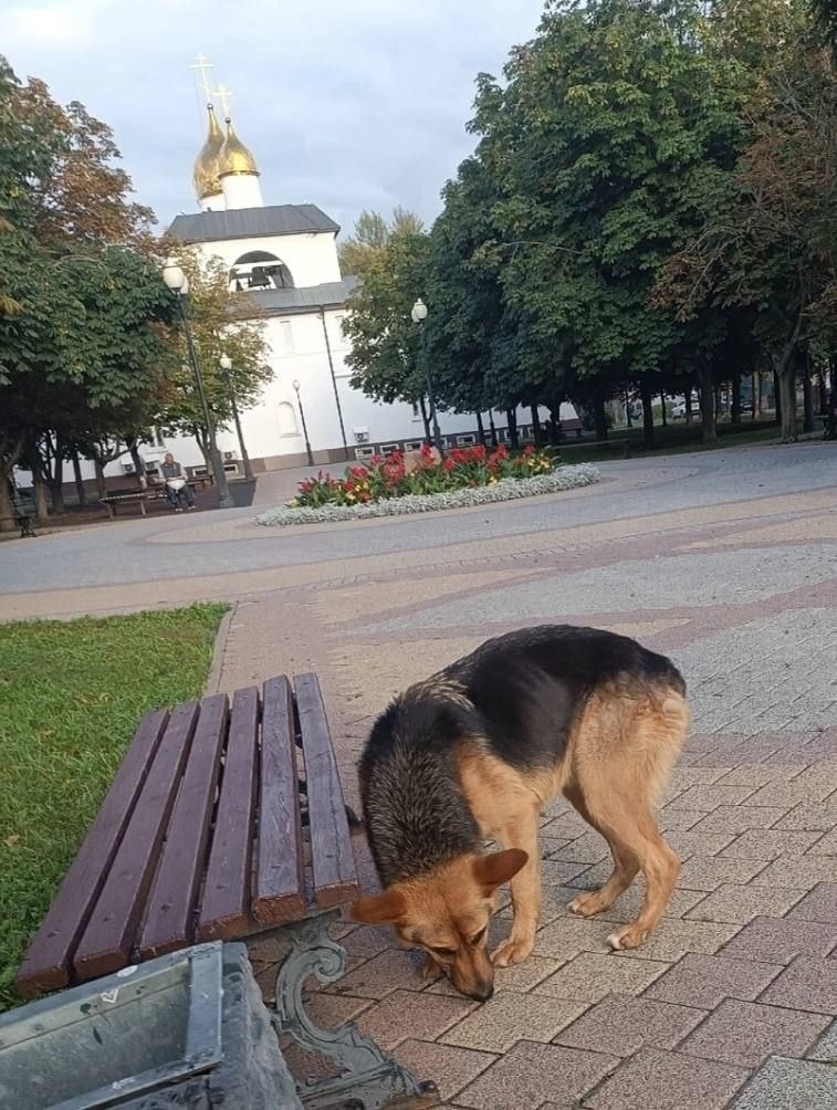 Пару дней назад в Балашихе появился пёсель без хвоста, похожий на овчарку 🐕