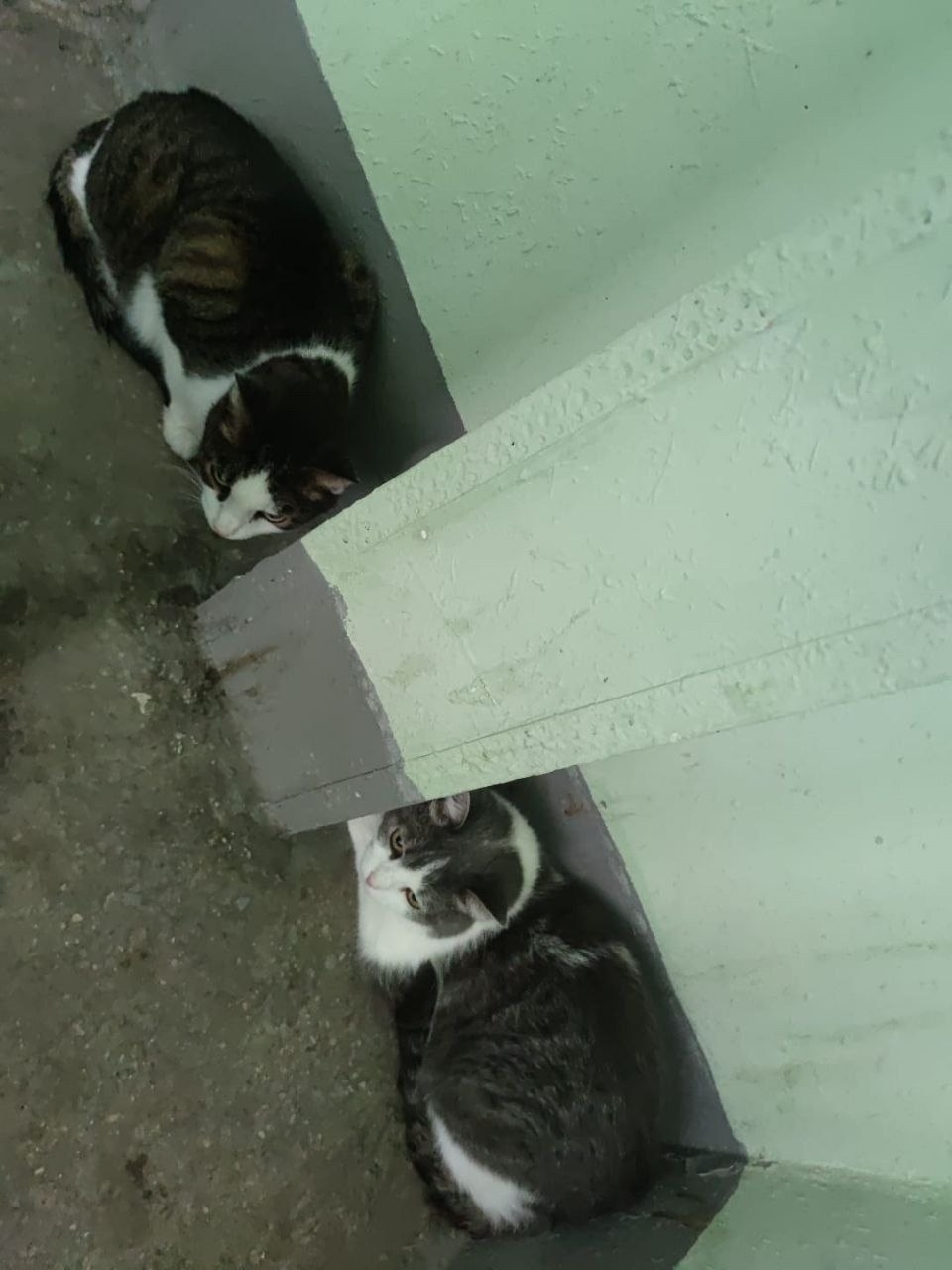 Нашедшая девушка определила их на лестнице и написала записку чтобы не трогали и не прогоняли, но сколько они там просидят не известно
