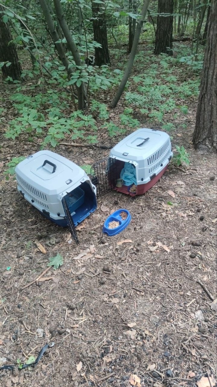 Кошки оставлены в переносках .