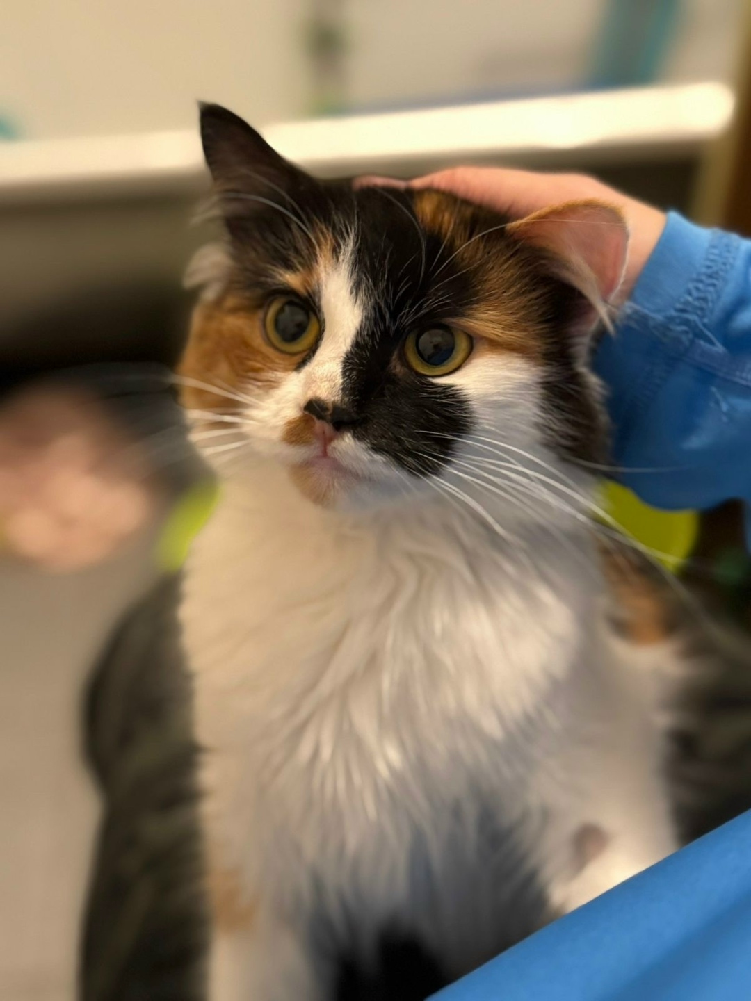 🥹Найдена на улице красавица кошка. Трехцветная, пушистая, молодая, до года. Стерилизована, обработана от паразитов, сданы анализы, привита.