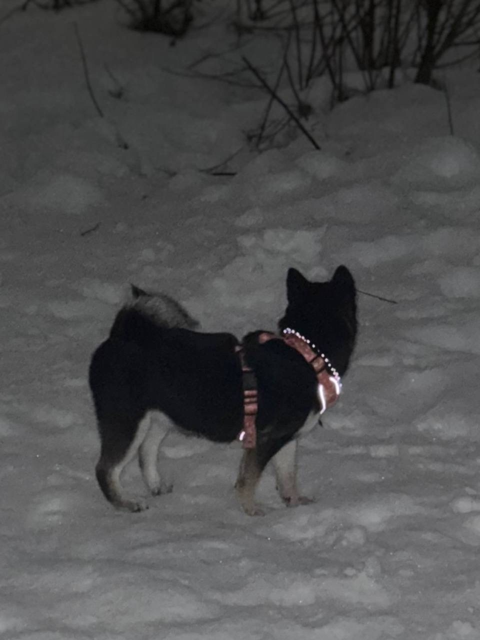 Бегает одна у речки, в шлейке. Убежала наверх, к парку. Кто потерял?