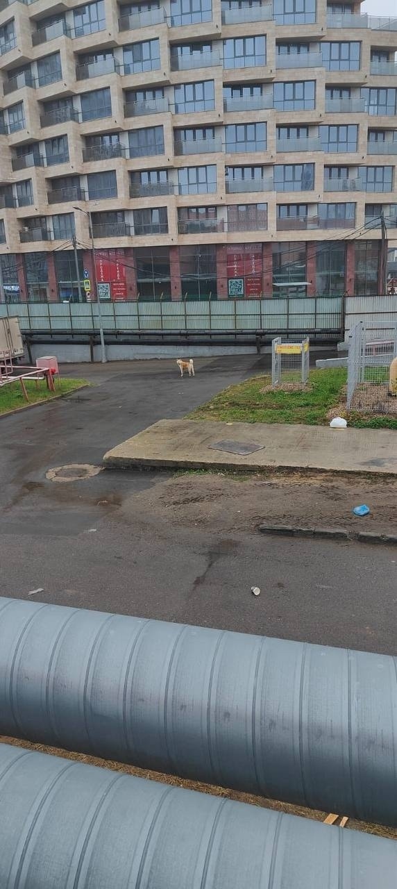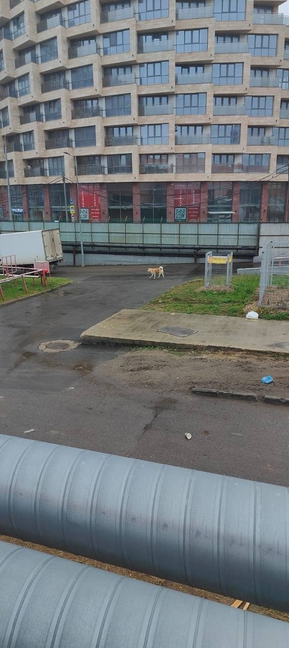 Уже не первый день бегает собачка возле Ашана на территории приёмки, возле компактора ,взял булочку и убежал 😥