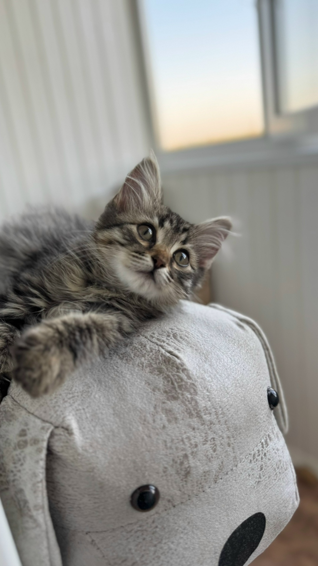 Самая большая фишка этой малышки, кроме буквы М на лбу, — её огромные уши 🥰 и характер. Очень ласковая, общительная, лезет целоваться, просится на ручки, сидит на плече, бодается, даже засыпает на руках. Она просто очаровала меня — такая трогательная, доверчивая и очень благодарная ❤️