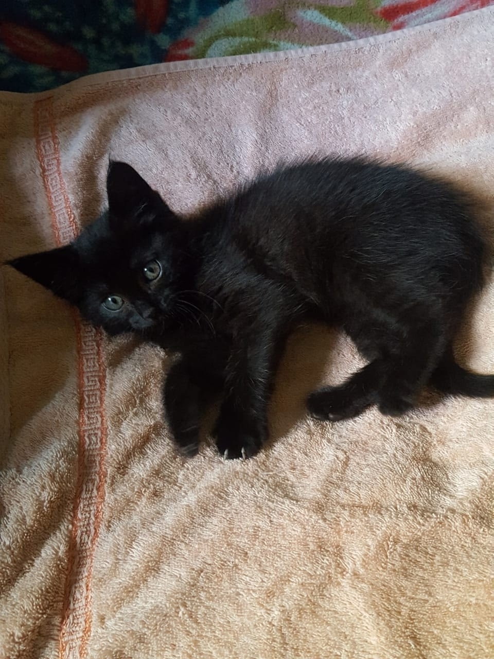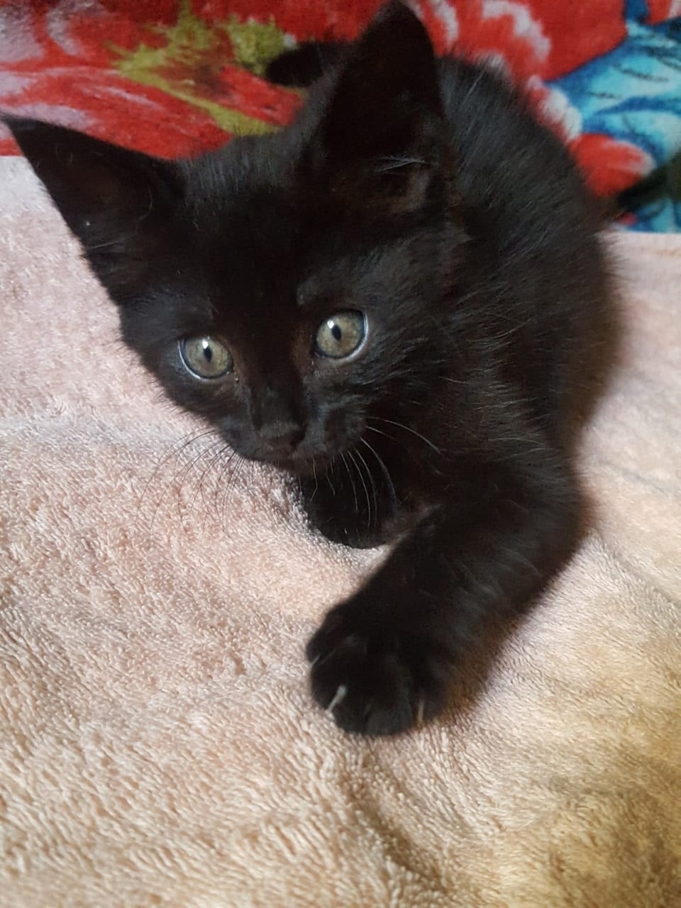 В Красногорске найден маленький котенок мальчик яркого черного окраса, бегал прятался под машинами. Возраст 1.5 мес, с глазками бусинками. Мини пантера. Ручной, ласковый, игривый малыш. Необыкновенно умный. Прекрасно ладит с детьми и животными. Лоток освоен. Привезем к Вам. Телефон 89250904750