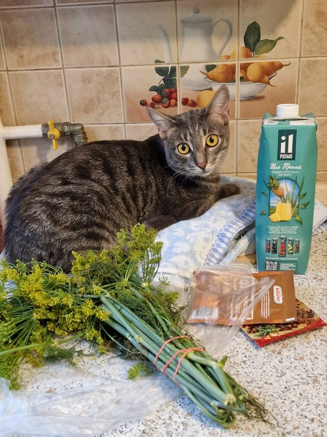 Арчи кот хозяйственный и образованный! Огурчики маринует, журнальчики на досуге почитывает. Если надо, может и за молочком последить, чтобы не убежало!