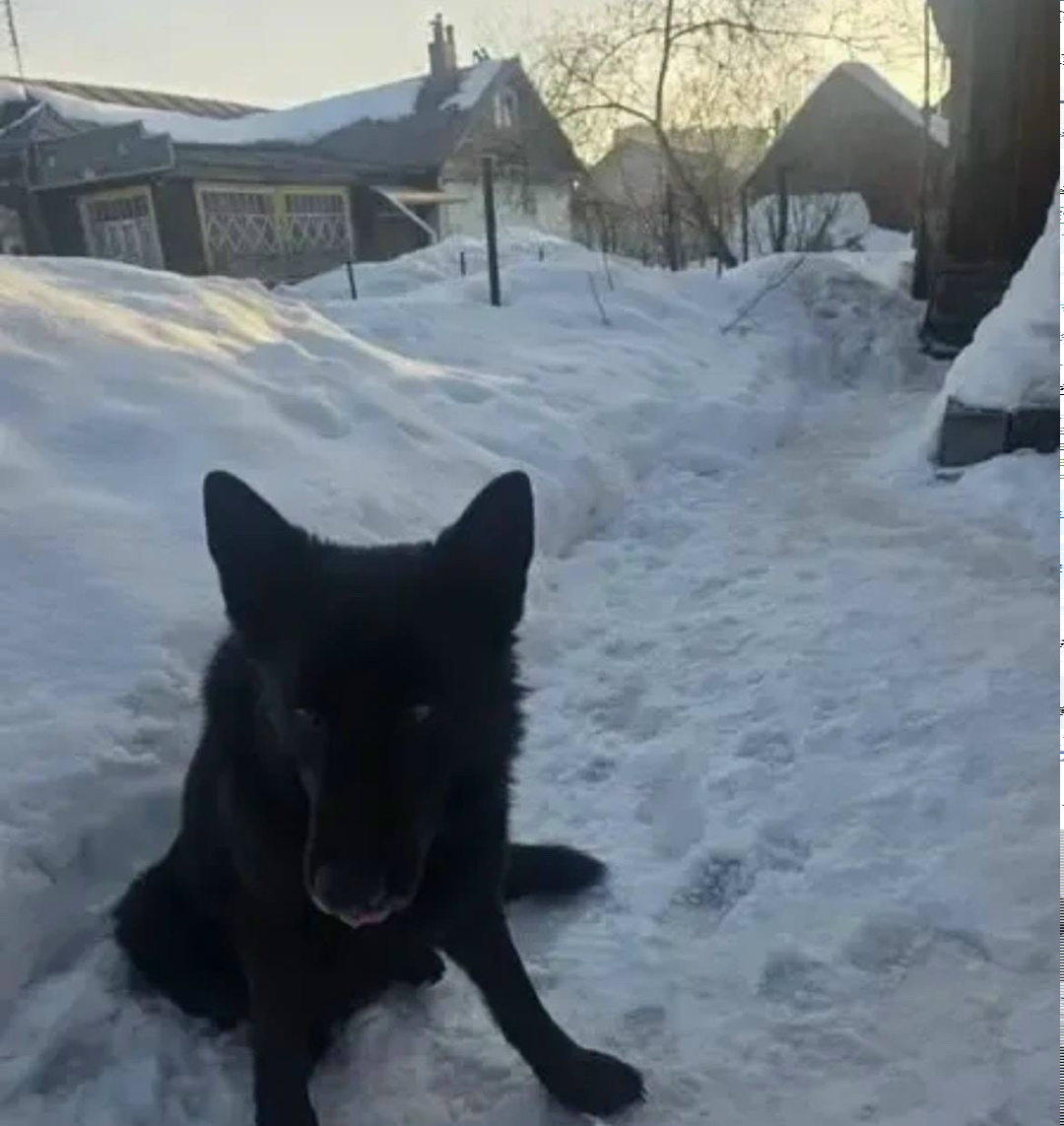 Черная собака, команды выполняет. Сама пошла до дома,приносит палки