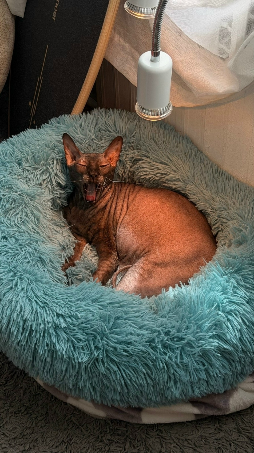 Малышка Туаль была найдена в мае на стройке у ТЦ Ашан. Рабочие были уверены, что котенок чем-то болен и не пускали ее в бытовку, подкармливая на улице. Сложно представить, как мерз котенок сфинкс ночами. Сейчас Красавица Туаль домашняя любимица и живет в Нью-Йорке.