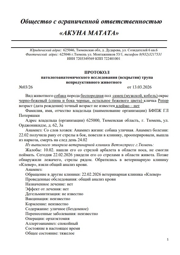 Патологоанатомическое заключение готово, и теперь эта история не только про найденную на улице раненую собаку, а про зафиксированный факт жестокого обращения с животным.